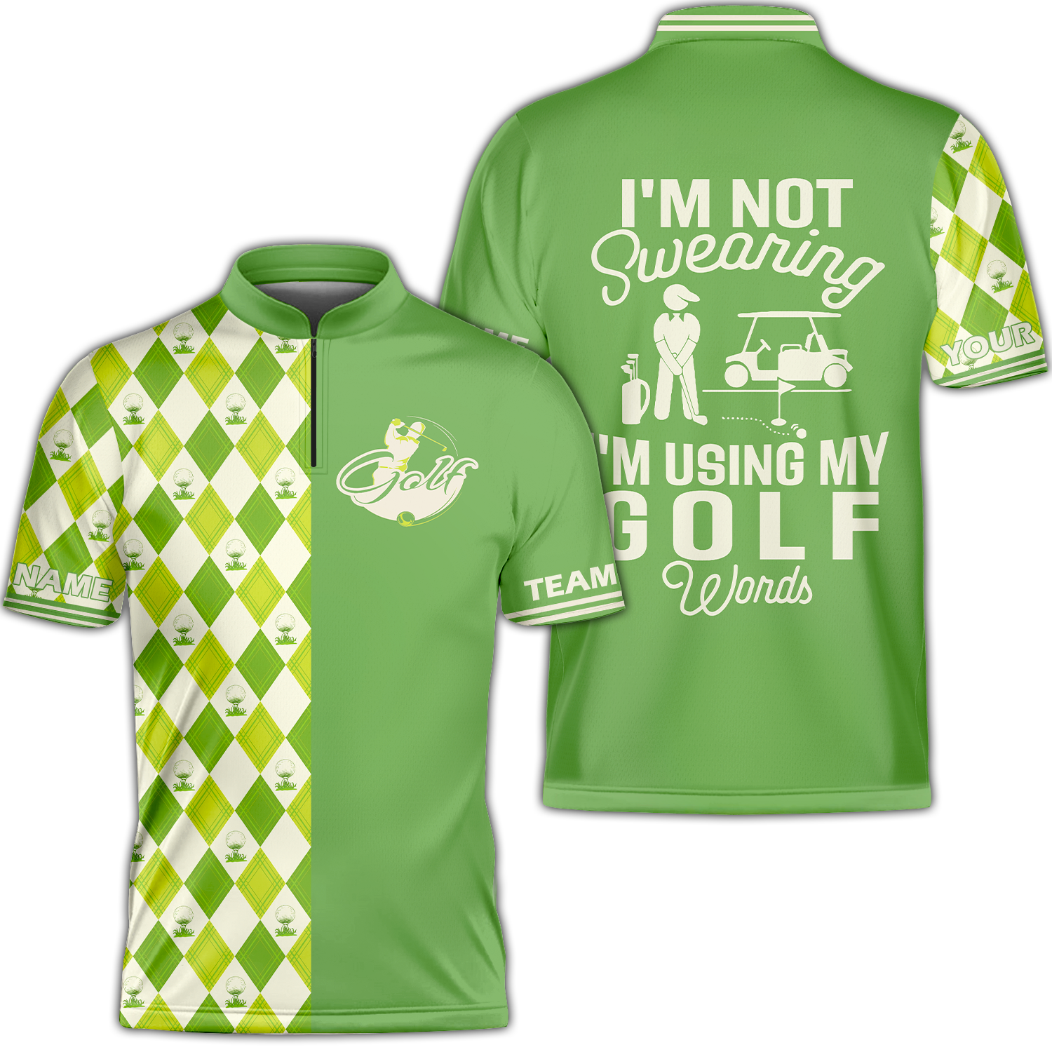 Golf Men Polo Shirt, I'm Not Swearing I'm Using My Golf Words Polo Shirt, Green Argyle Pattern Golf Shirt For Male Golfers