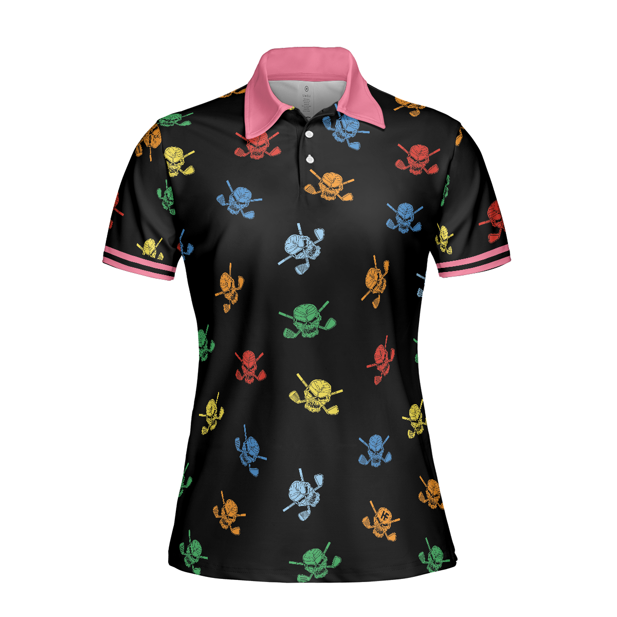 Golf Skull Sleeve Women Polo Shirt, Colorful Golf Skull Polo Shirt - Best Gift For Female Golf Lovers