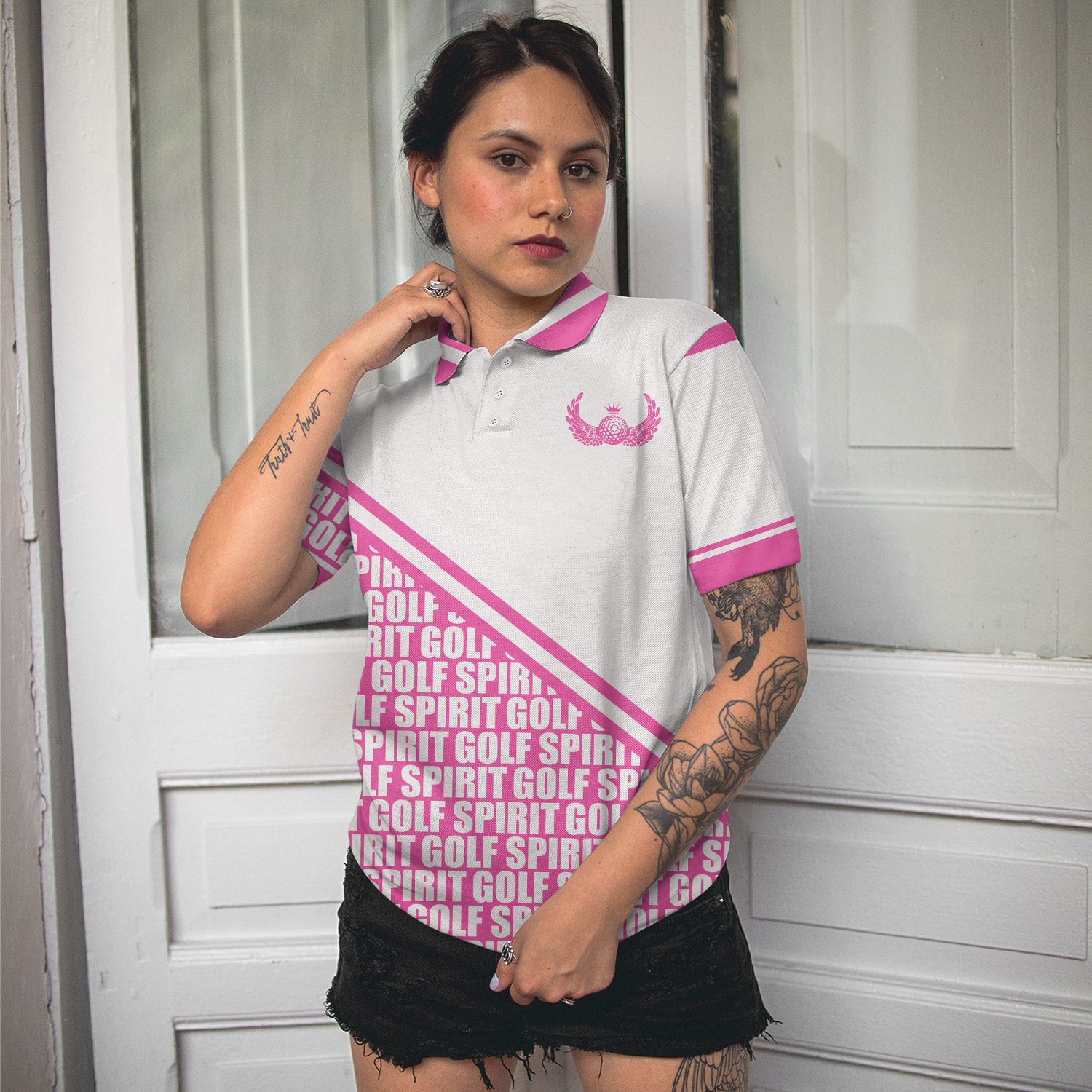Golf Women Polo Shirt, Spirit In Pink Golf Short Sleeve Women Polo Shirt, White And Pink Golf Shirt For Ladies, Unique Female Golf Gift