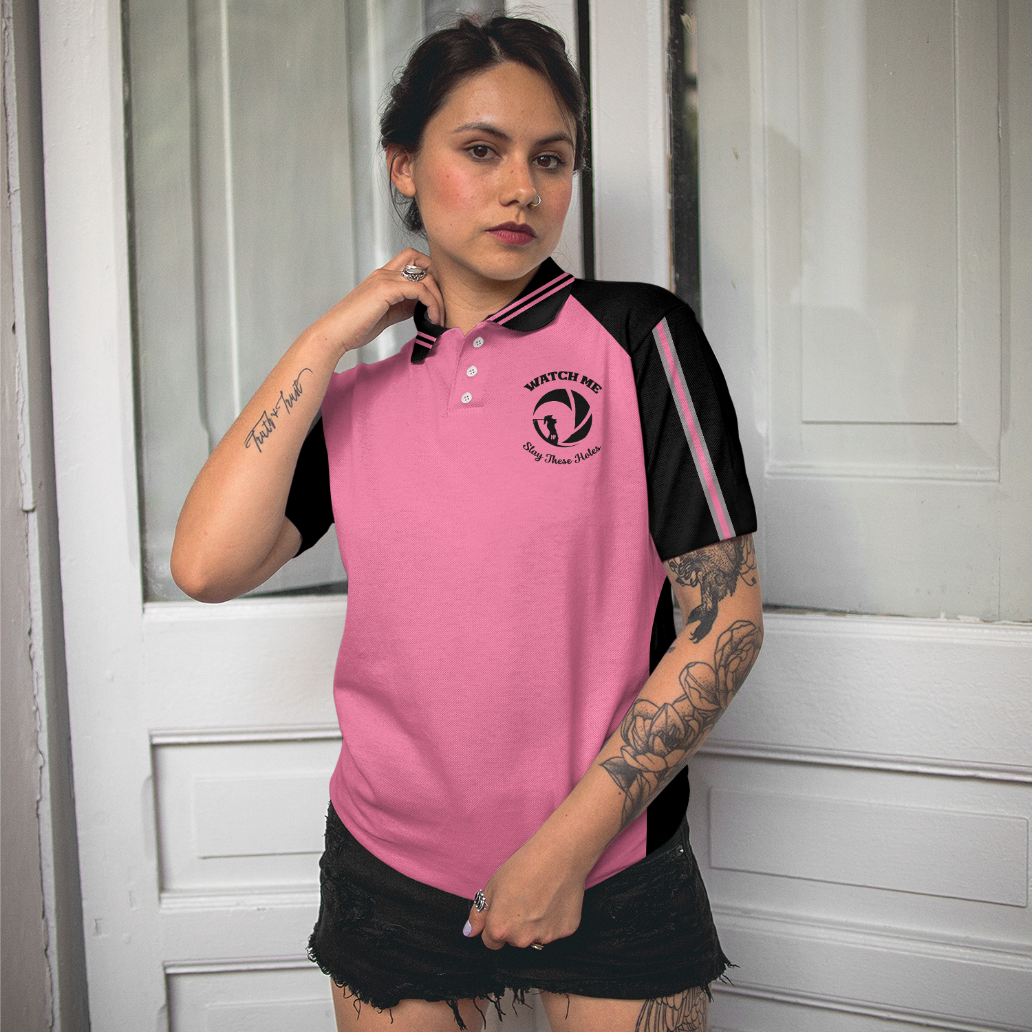 Golf Women Polo Shirt, Watch Me Slay These Holes Short Sleeve Women Polo Shirt, Pink And Black Polo Shirt - Perfect Gift For Ladies, Golfers