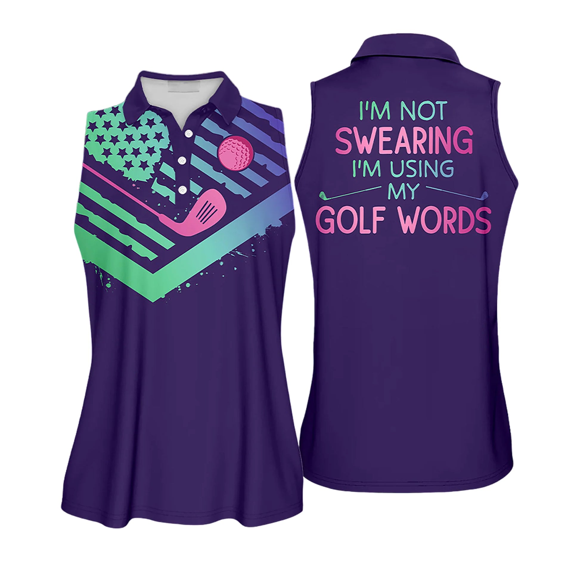 Golf Women Sleeveless Athleisure Polo Shirt, Gradient American I am Not Sweating I Am Using My Golf Words - Gift For Golfers, Female, Golf Lovers