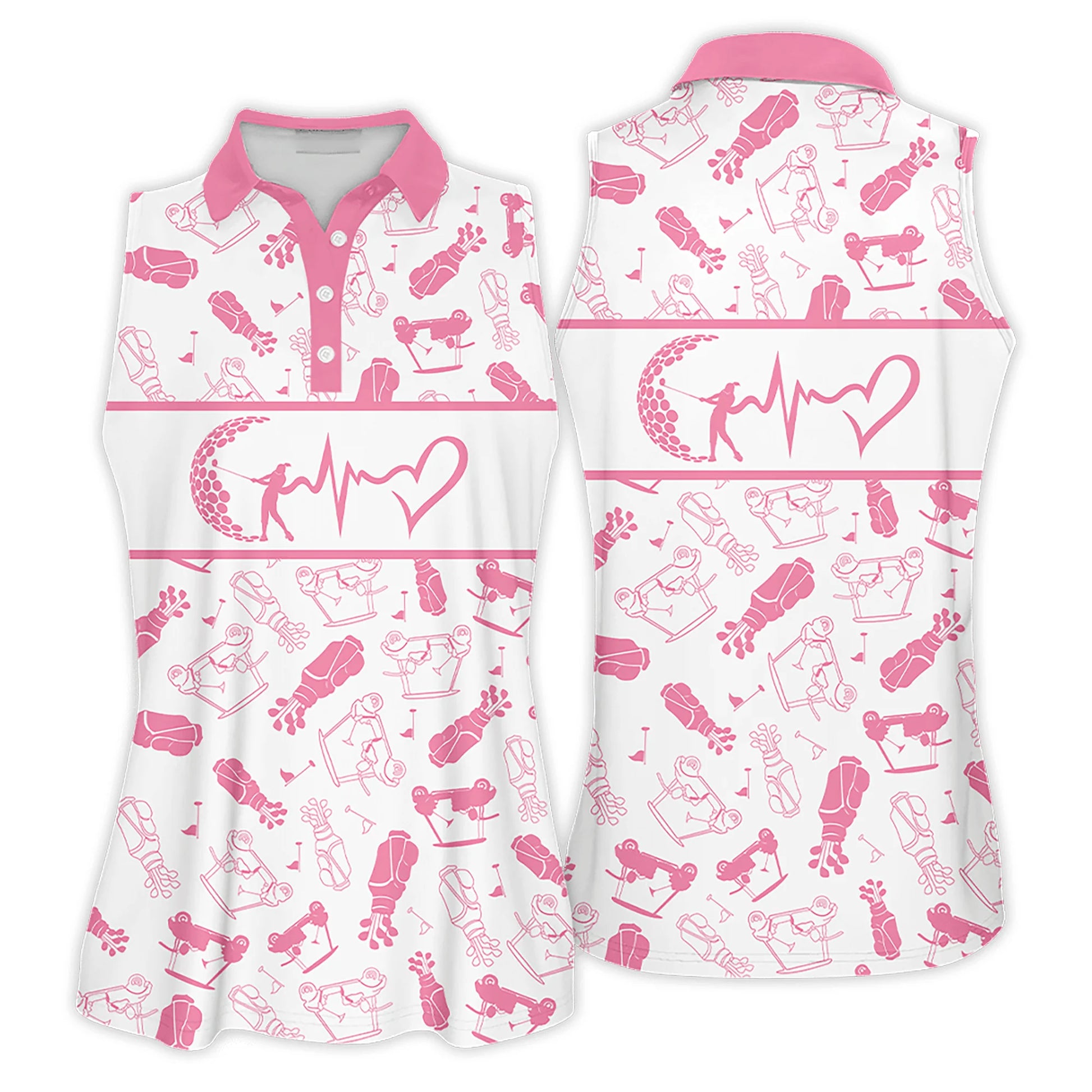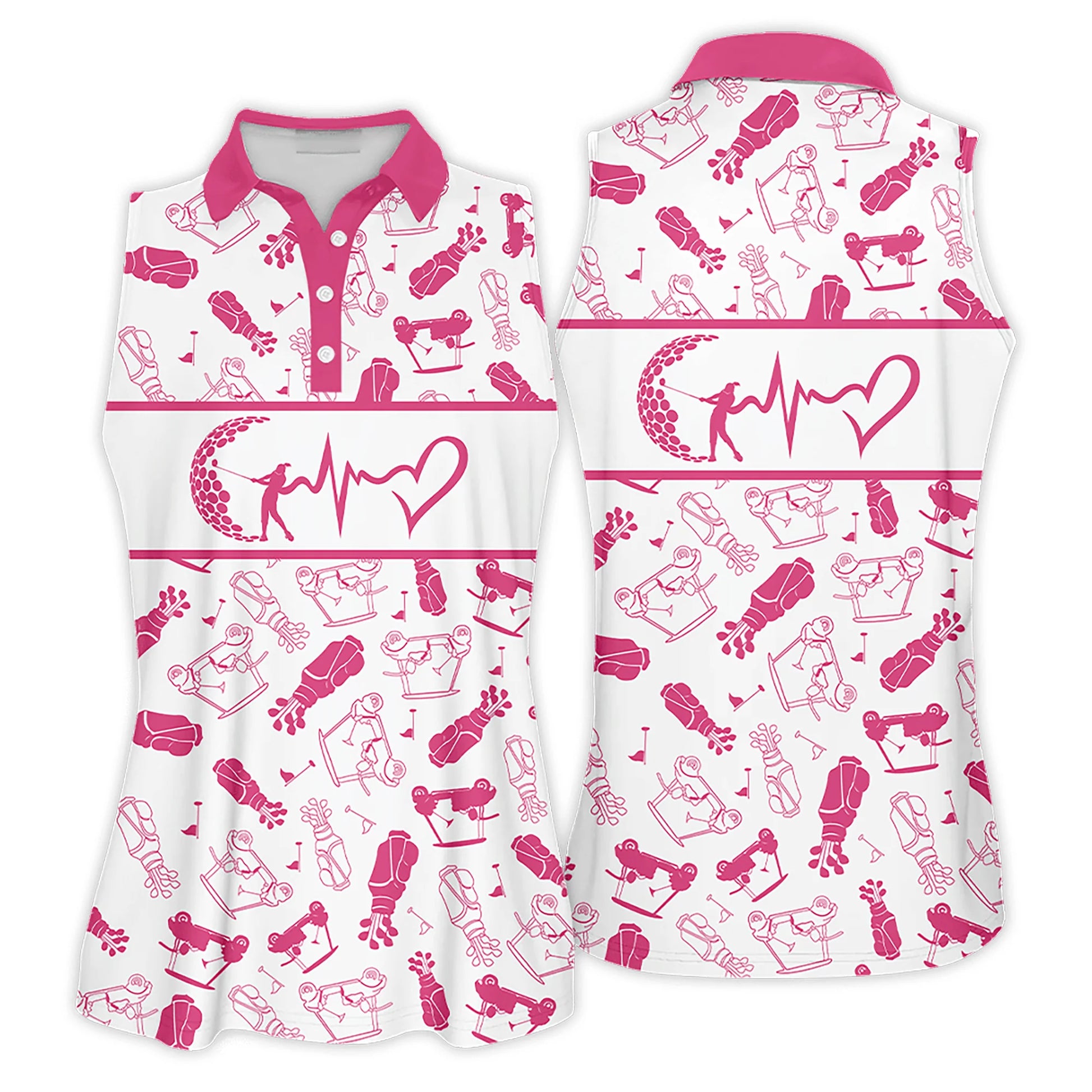 Golf Women Sleeveless Athleisure Polo Shirt, Heartbeat Golf Clubs Funny Golf Symbol Multicolor - Gift For Golfers, Female, Golf Lovers, Mother's Day