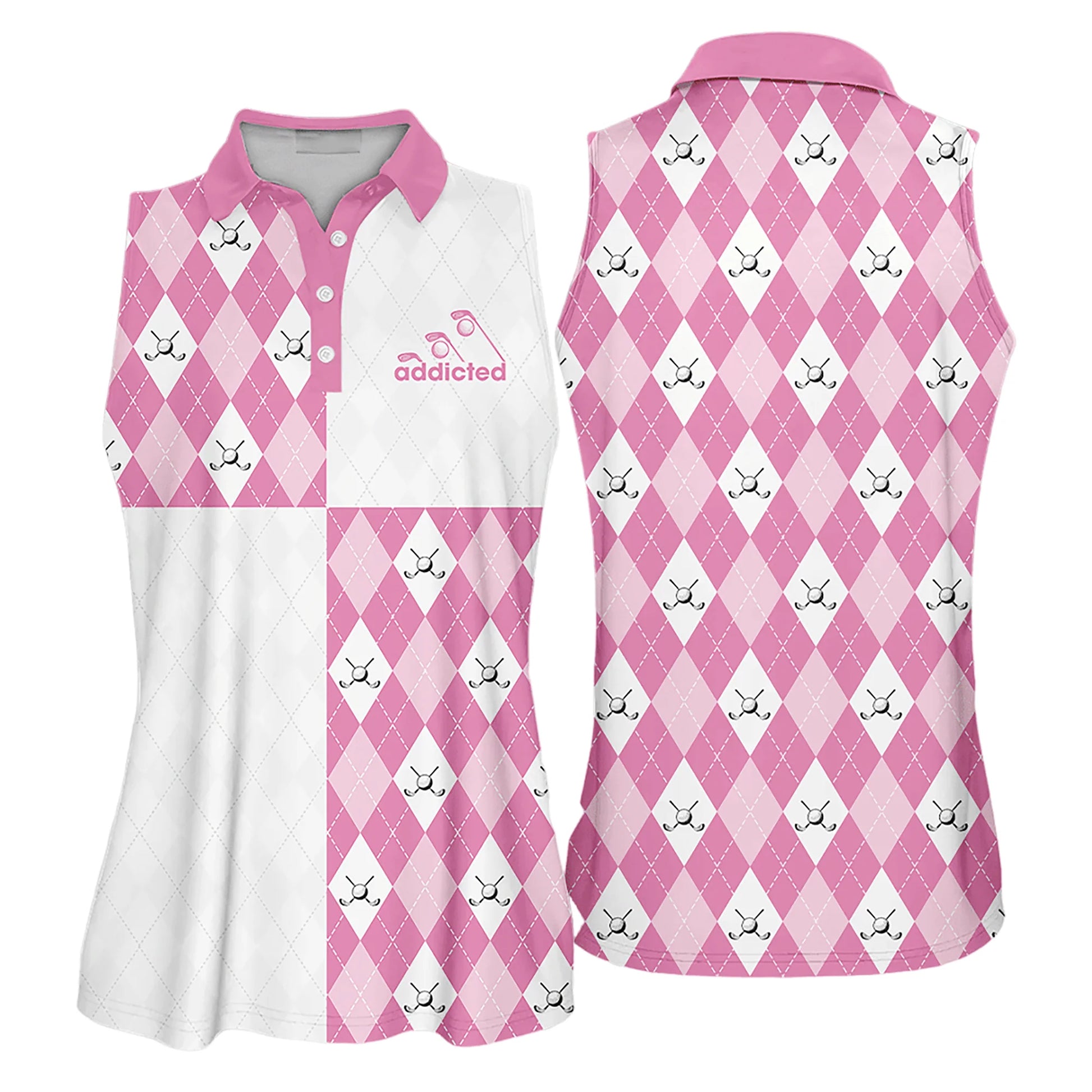 Golf Women Sleeveless Athleisure Polo Shirt, Pink Argyle Pattern Dry Fit - Gift For Golfers, Female, Golf Lovers, Mother's Day