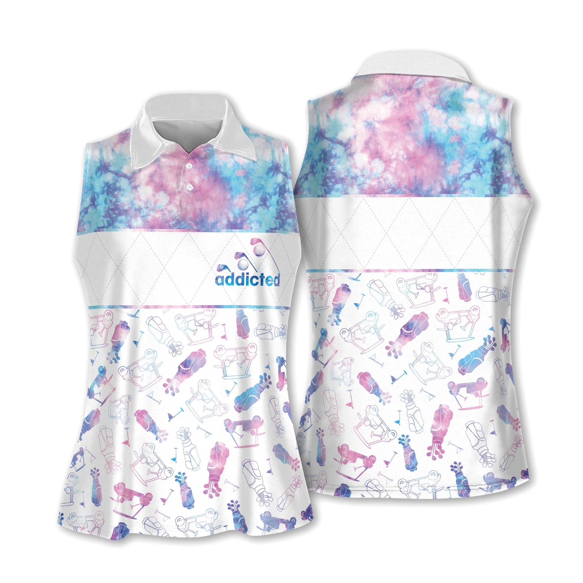 Golf Women Sleeveless Athleisure Polo Shirt, Tie-dye Addicted Golf Symbol Pattern - Gift For Golfers, Female, Golf Lovers, Mother's Day