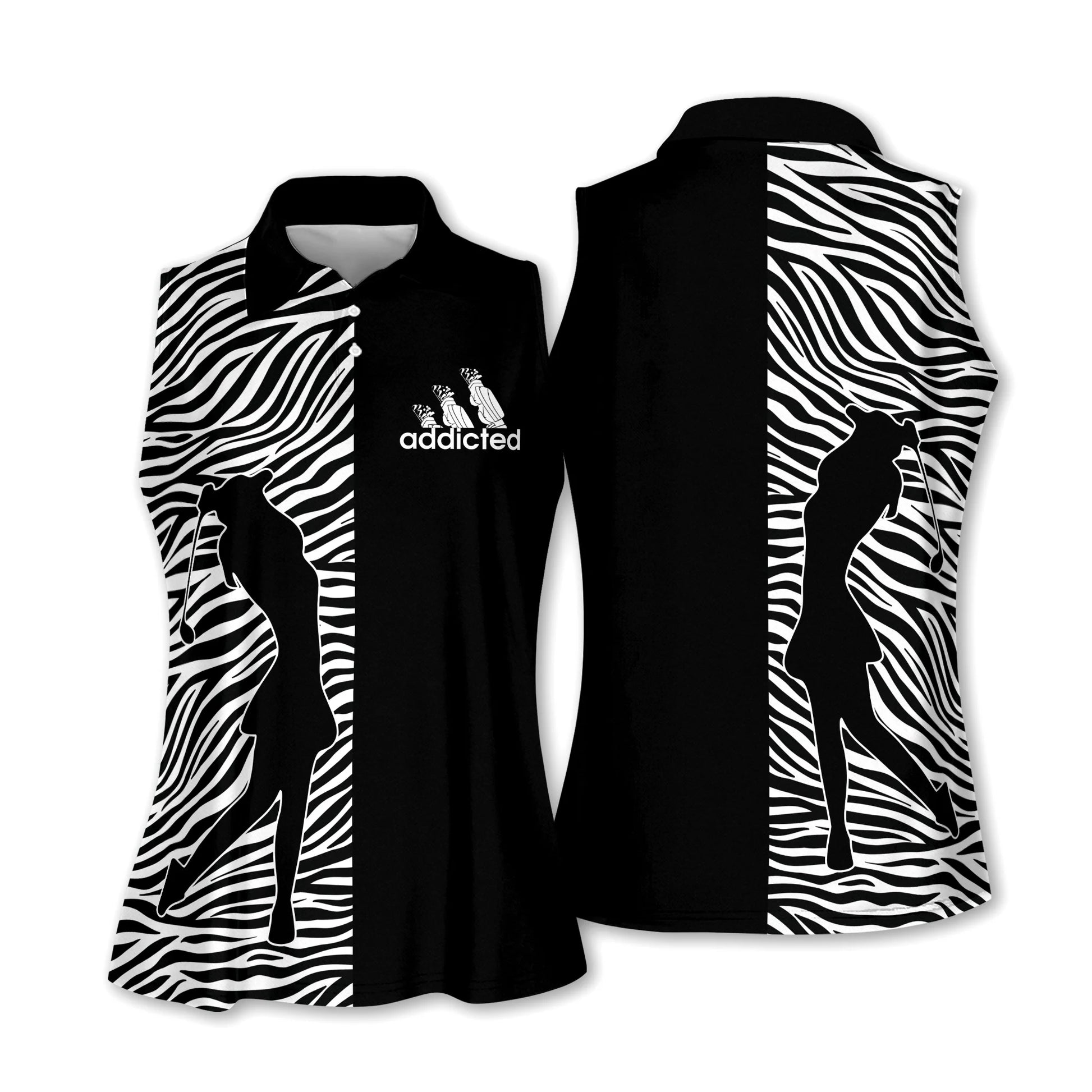 Golf Women Sleeveless Athleisure Polo Shirt, Zebra Pattern Addicted Polo Shirt - Gift For Mother's Day, Golfers, Female, Golf Lover