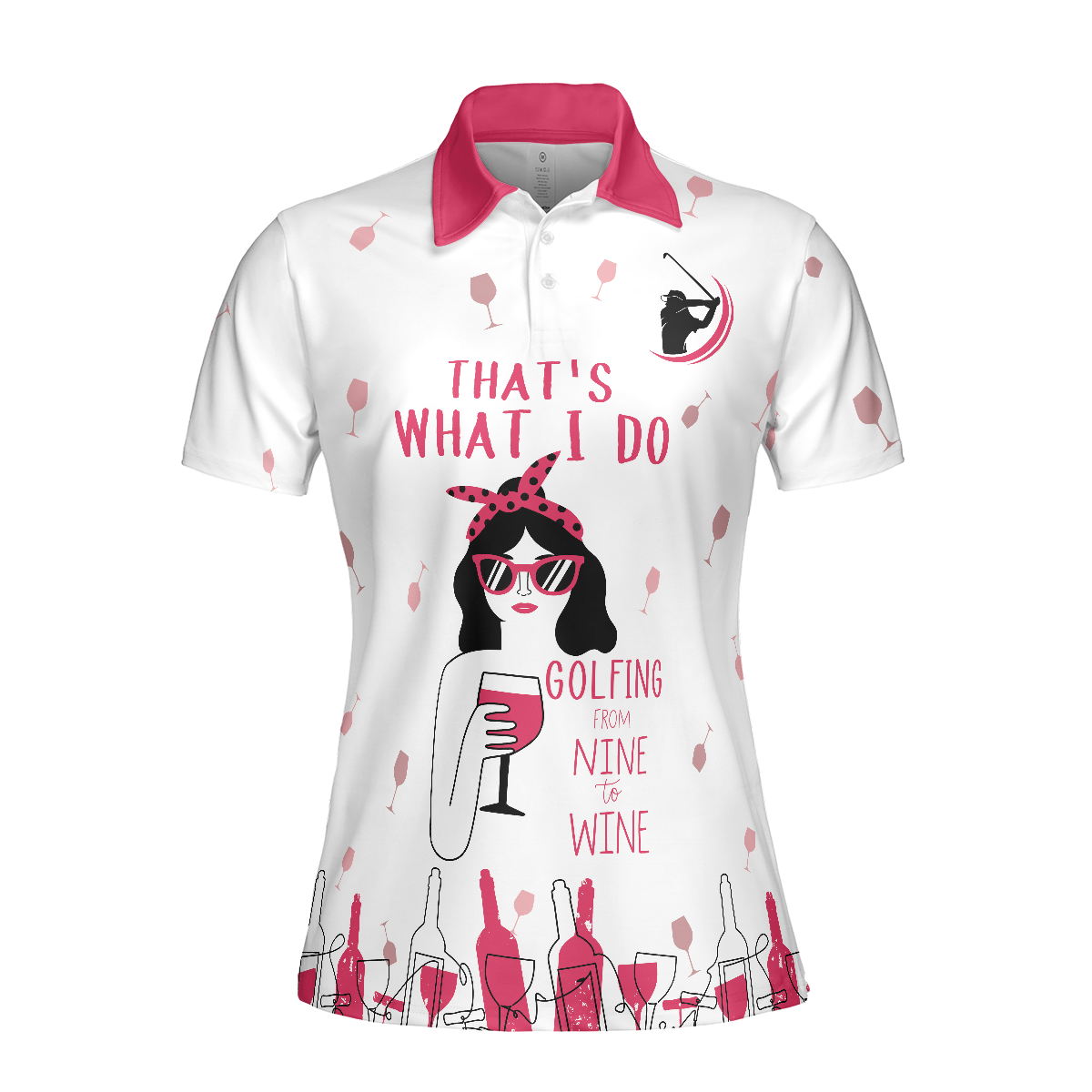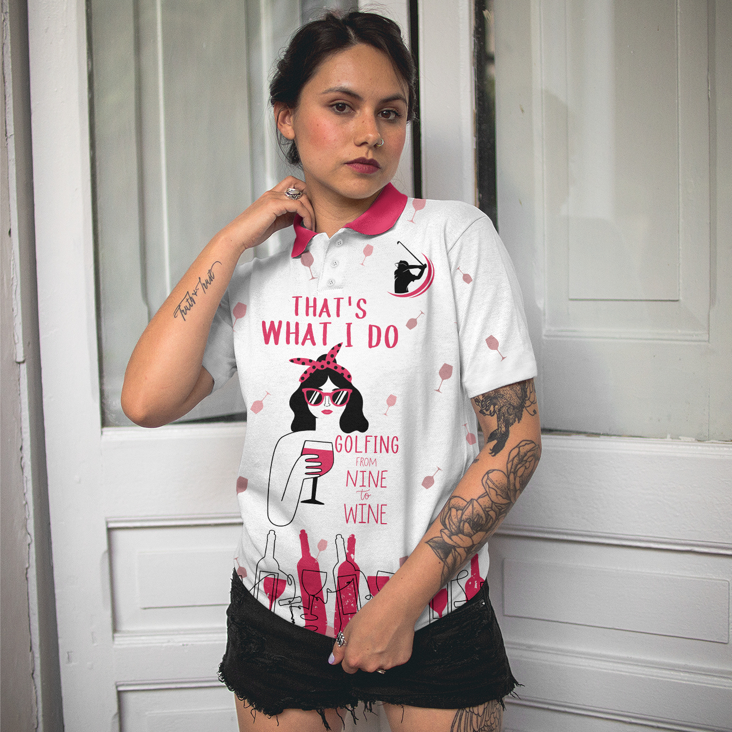 Golfing From Nine To Wine Short Sleeve Women Polo Shirt, Pink Polo Shirt For Women, Golf Shirt For Wine Lovers, Best Gift For Golfers