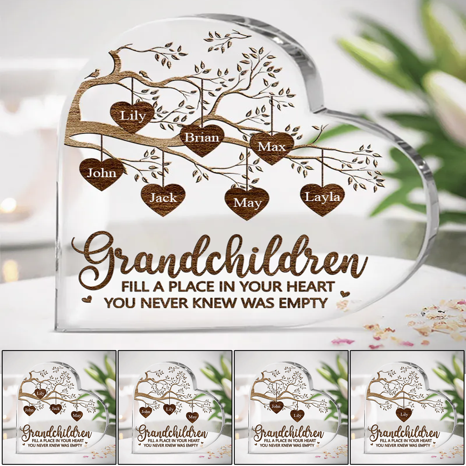 Grandchildren Custom Heart Shaped Acrylic Plaque, Mother's Day, Fill A Place In Your Heart You Never Knew Was Empty Personalized Custom Heart Shaped Acrylic Plaque