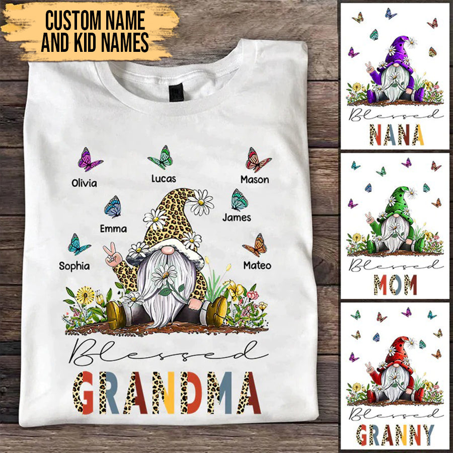Grandma and Kids Custom Name T-shirt, Blessed Grandma Mom Gnome Butterfly Grandkids Personalized Shirt - Perfect Gift For Gigi, Nana, Mimi, Grandma