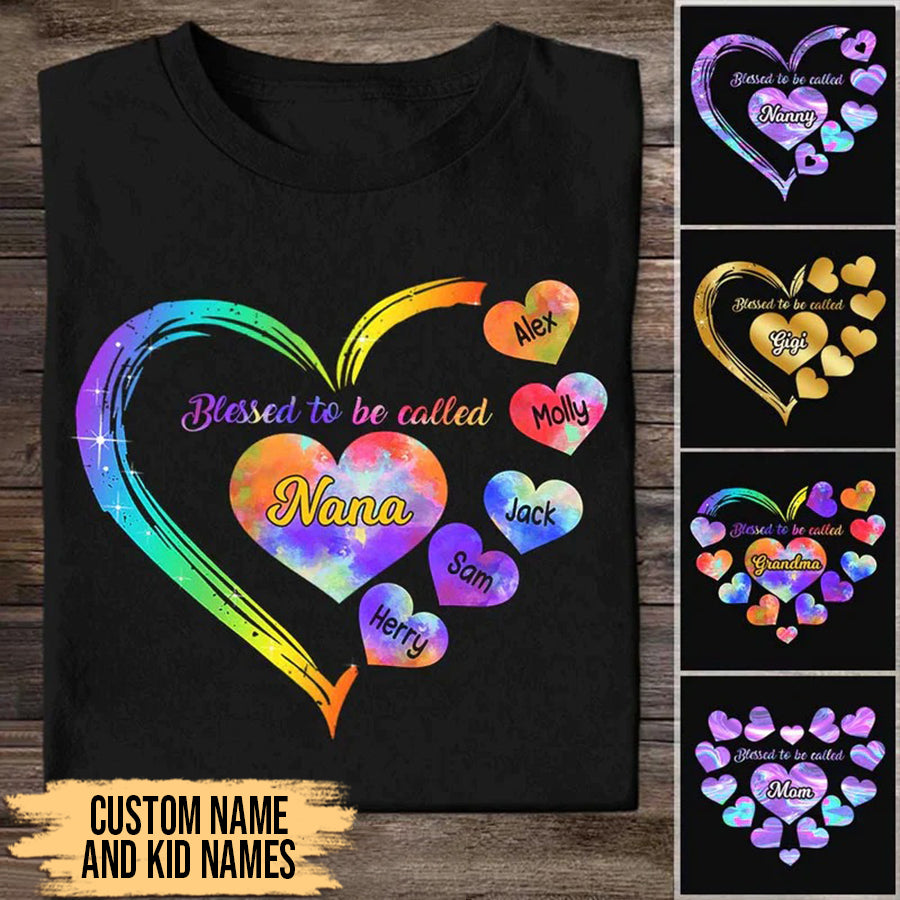 Grandma and Kids Custom Name T-shirt, Blessed To Be Called Grandma Personalized Heart Grandkids Personalized Shirt - Perfect Gift For Gigi, Nana, Mimi, Grandma