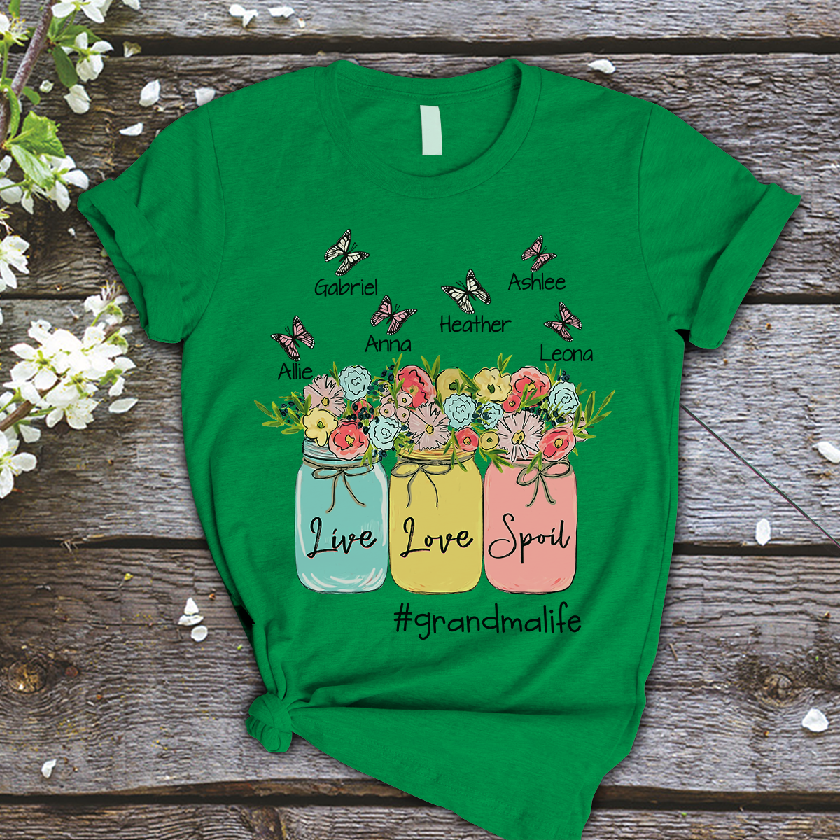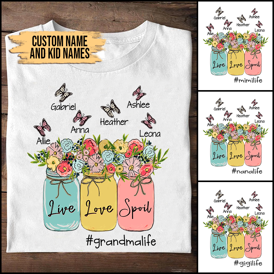 Grandma and Kids Custom Name T-shirt, Live Love Spoil Grandmalife Personalized Shirt, Flower Vase Shirt - Perfect Gift For Gigi, Nana, Mimi, Grandma