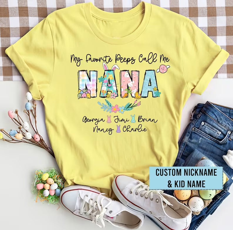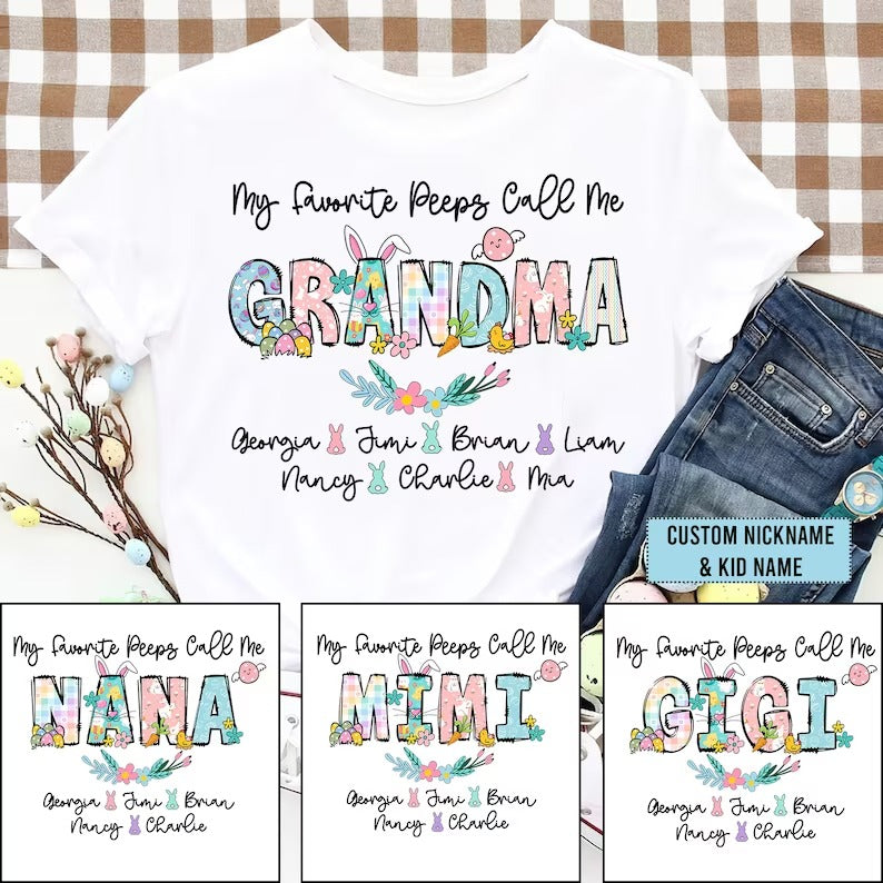 Grandma and Kids Custom Name T-shirt, My Favorite Peeps Call Me Grandma Easter Personalized Shirt - Perfect Gift For Gigi, Nana, Mimi, Grandma