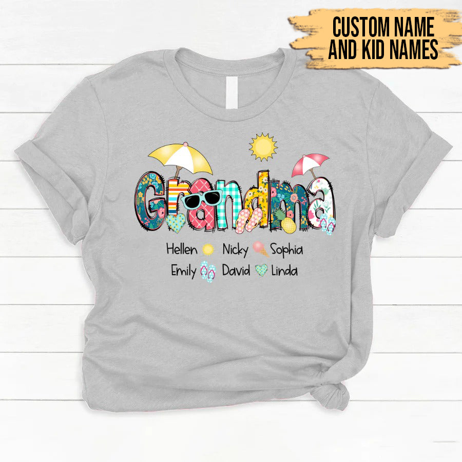 Grandma and Kids Custom Name T-shirt, Summer Grandma With Grandkids Name Personalized Shirt - Perfect Gift For Gigi, Nana, Mimi, Grandma