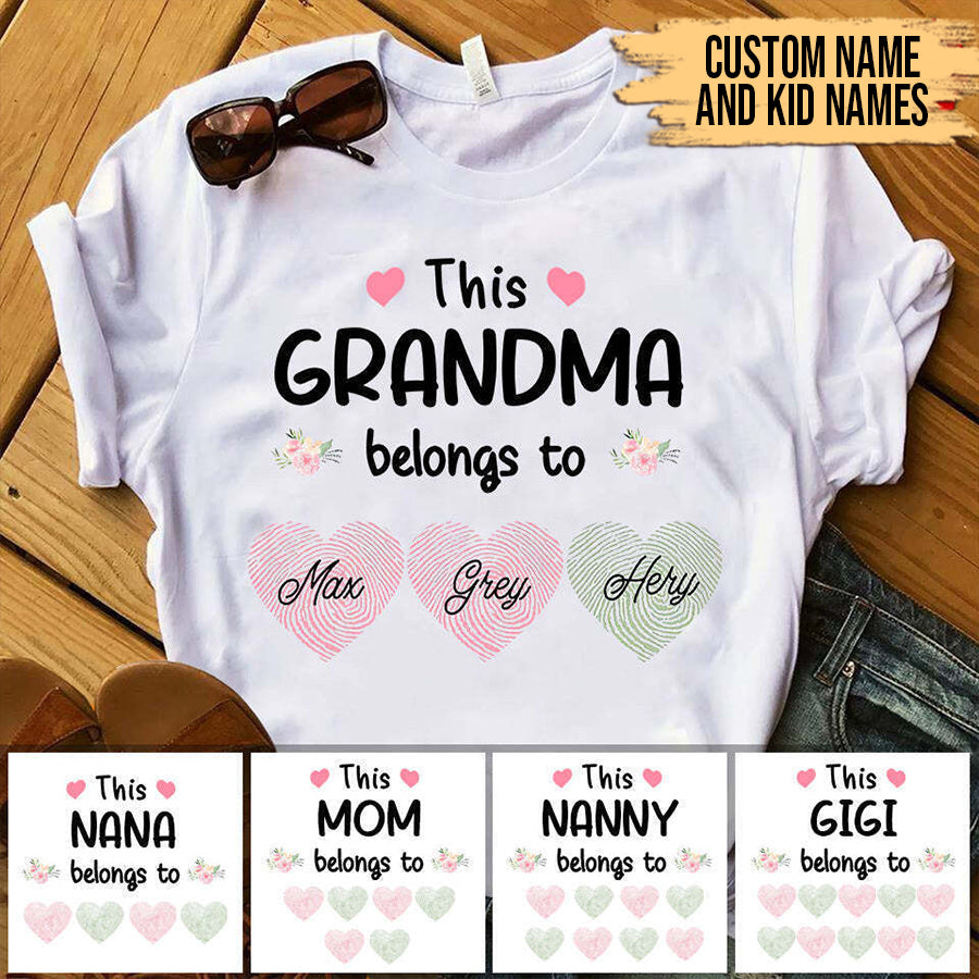 Grandma and Kids Custom Name T-shirt, This Grandma Belongs To Grandkids Heart Fingerprint Personalized Shirt - Perfect Gift For Gigi, Nana, Mimi, Grandma