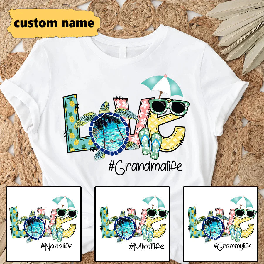 Grandma Life Custom Name T-Shirt, Mother's Day Personalized T-Shirt, Turtles Summer Love Custom T-Shirt - Gift For Granma, Mimi, Nana, Grammy