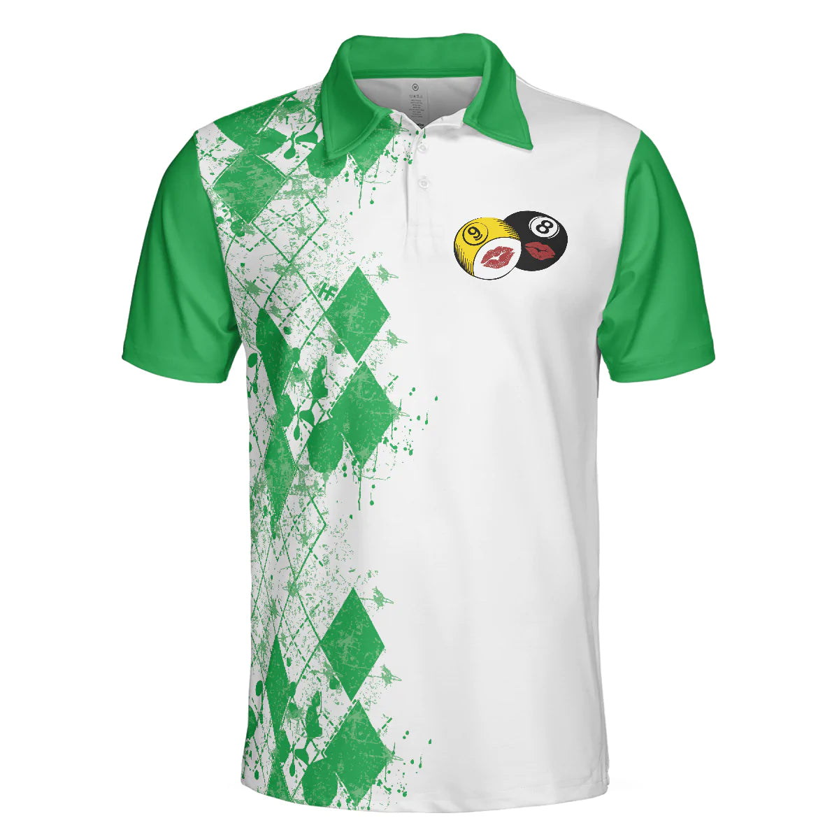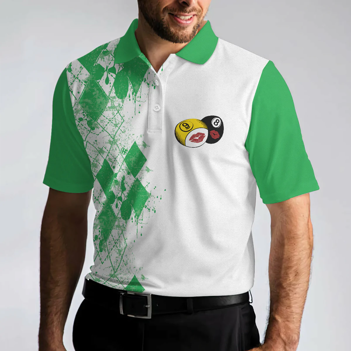 Green Argyle Pattern Billiards Men Polo Shirt, Kiss My Balls For Luck Death Polo Shirt, Polo Style Billiards Shirt For Male, Gift For Billiard Lovers