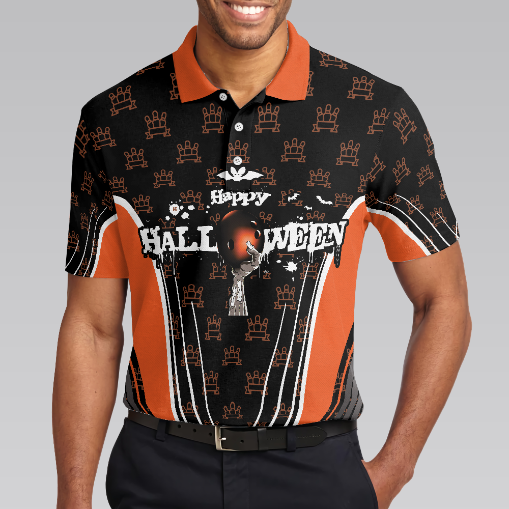 Happy Halloween And Happy Bowling Men Polo Shirt, Short Sleeve Bowling Shirt For Men, Gift For Bowling Lovers