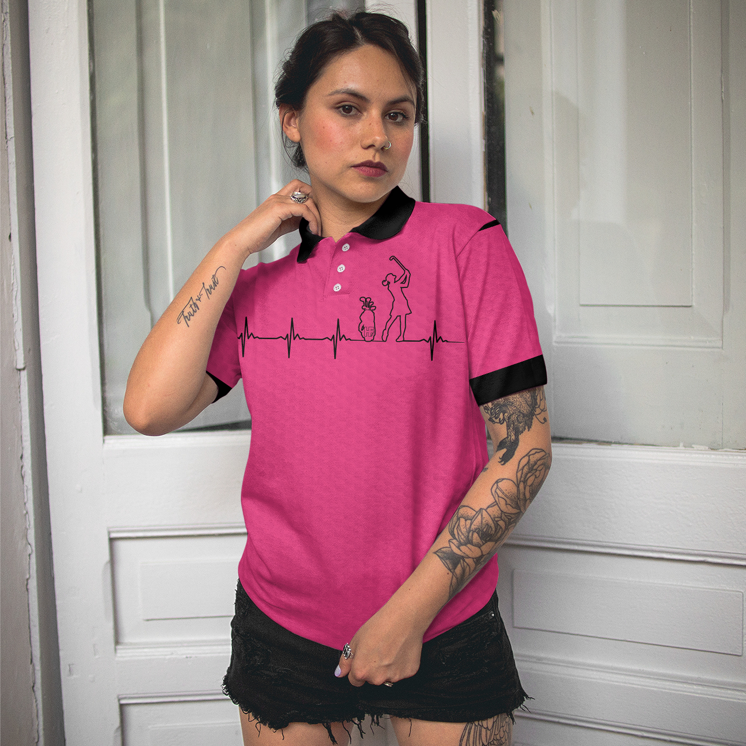 Heartbeat Golf Lady Pink Golf Short Sleeve Women Polo Shirt, Best Golf Gift For Women