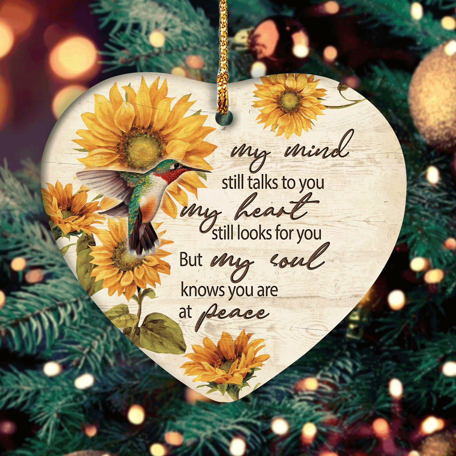 Heaven Heart Ceramic Ornament - Sunflower pattern, Colorful hummingbird - Memorial Gift For Family Members - My soul knows you are at peace