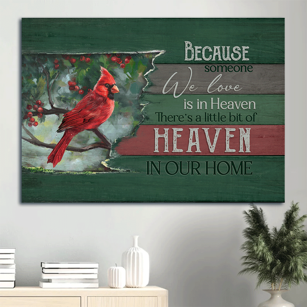 Heaven Landscape Canvas - Beautiful cardinal, Green forest, Cranberry Landscape Canvas - Memorial Gift For Family Members - Because someone we love is in heaven