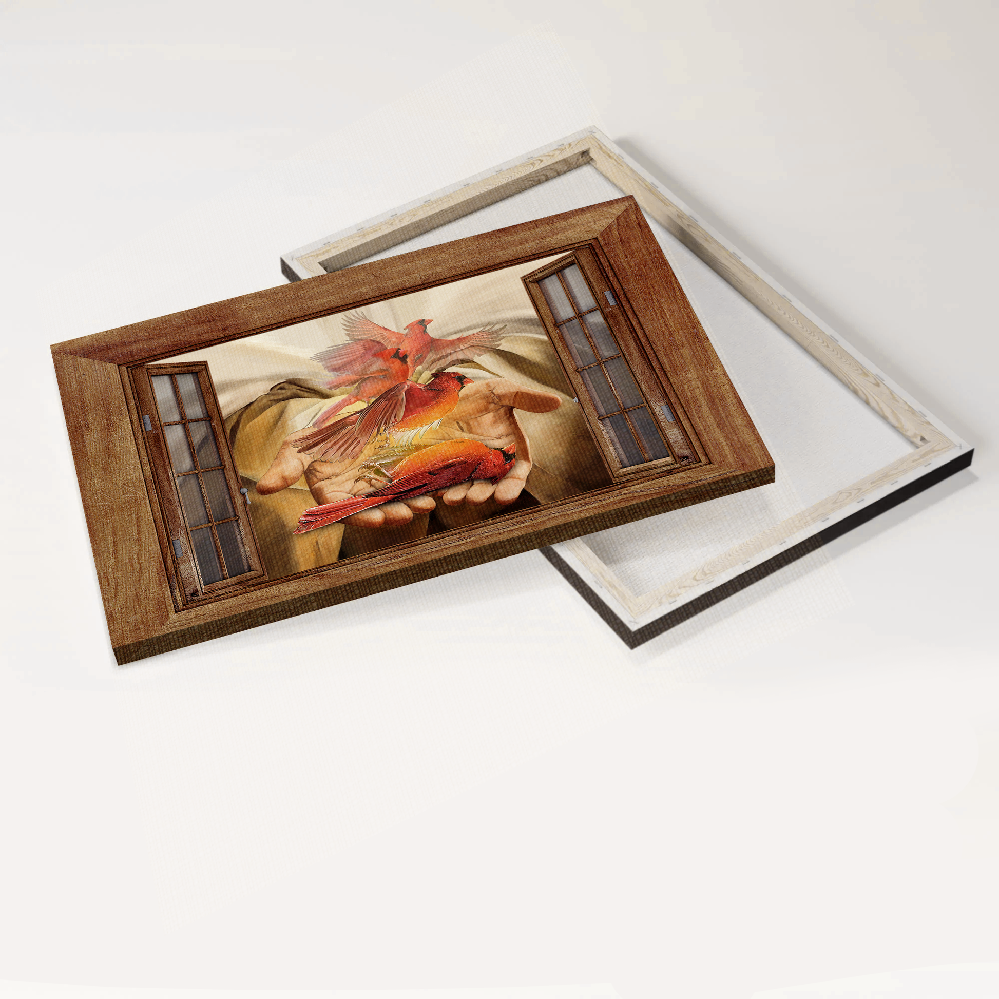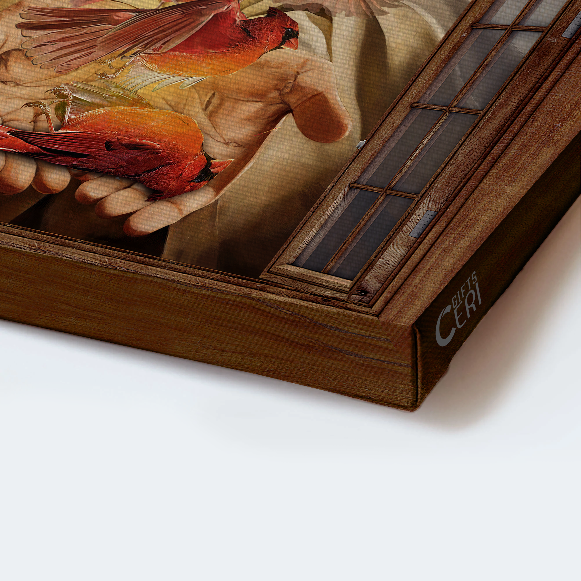 Heaven Landscape Canvas - Beautiful cardinal, Jesus's hand, Infinite halo Landscape Canvas - Memorial Gift For Family Members - Way to heaven