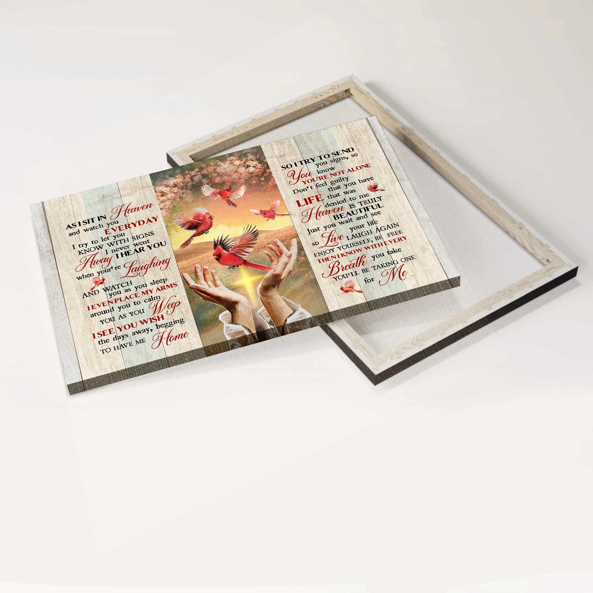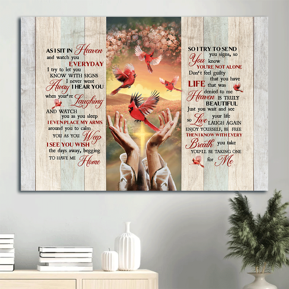 Heaven Landscape Canvas - Beautiful cardinal, Rose background, Pretty sunset Landscape Canvas - Memorial Gift For Family Members - As I sit in heaven