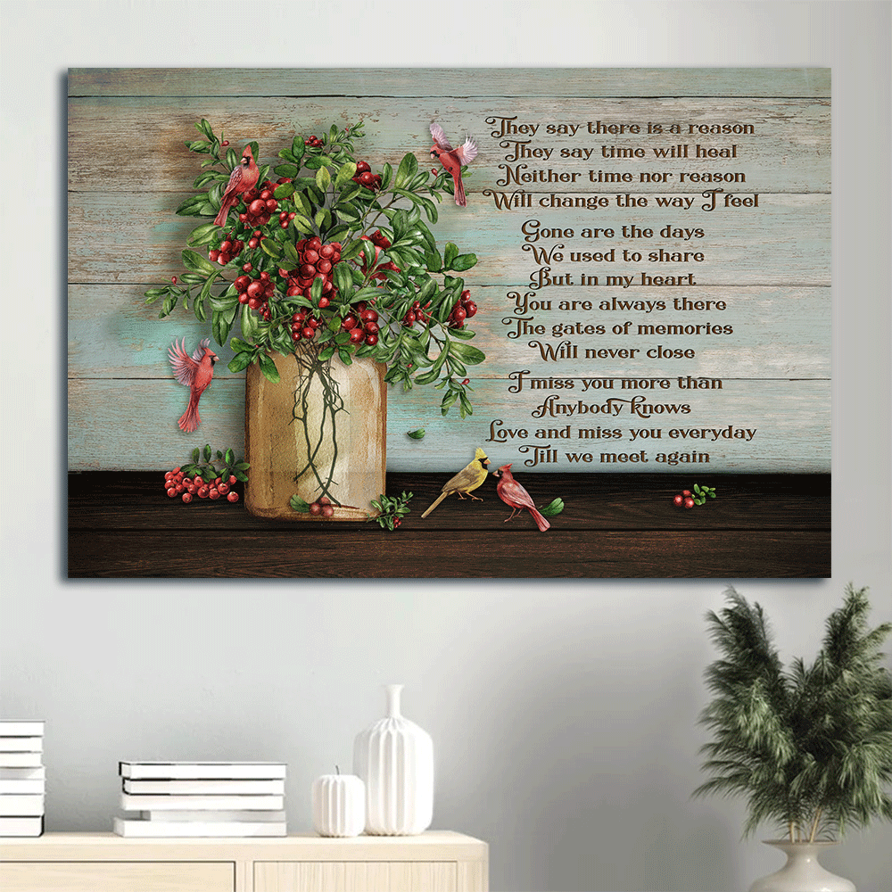 Memorial Landscape Canvas - Beautiful Cranberry Painting, Red Cardinal Landscape Canvas - Memorial Gift For Family Members - They Say There Is A Reason