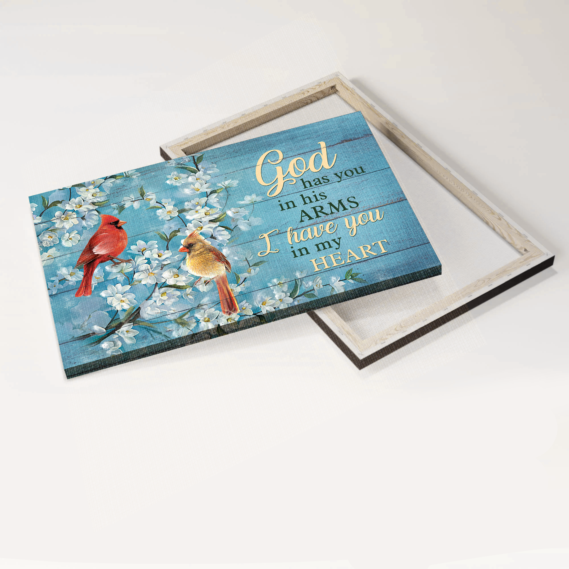 Cardinal couple, Jasmine painting, Blue background, Vintage painting, I have you in my heart - Heaven Landscape Canvas Prints, Wall Art can be hung on the wall of your kitchen, living room, bedroom, bathroom, and even outdoor space.