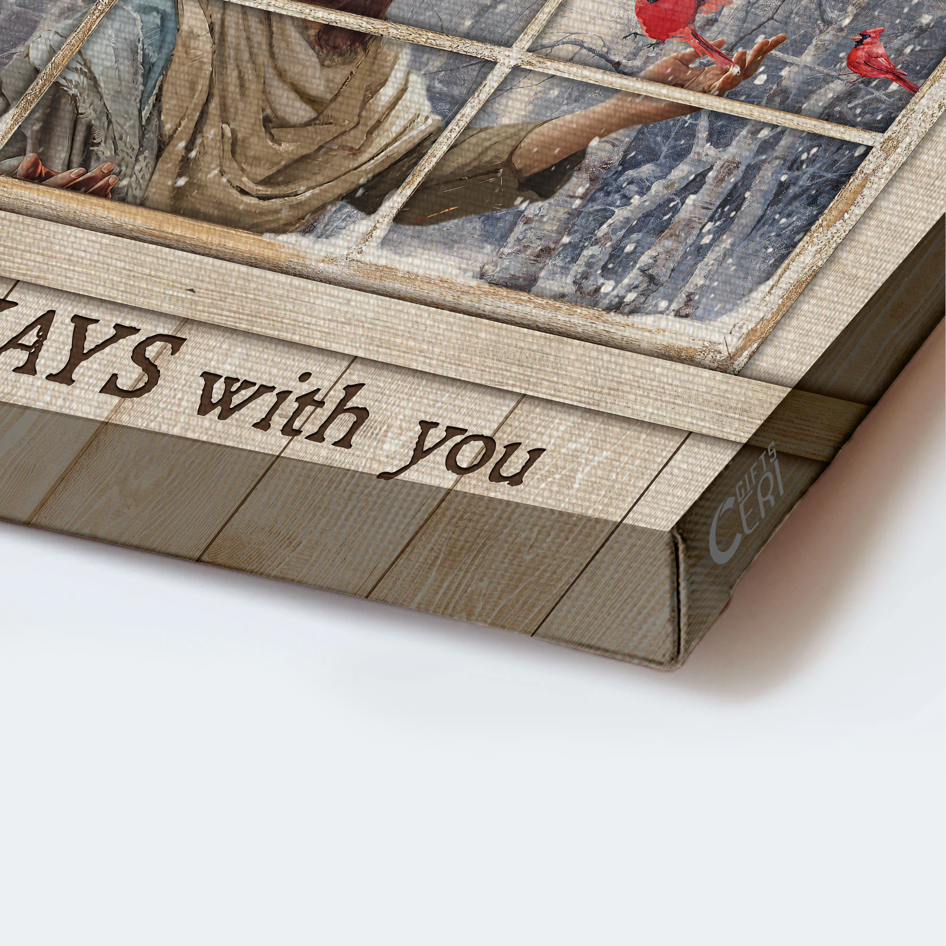 Heaven Landscape Canvas - Red cardinal, Jesus Christ, Wooden window frame, I am always with you Landscape Canvas - Memorial Gift For Family Members Landscape Canvas Prints, Wall Art