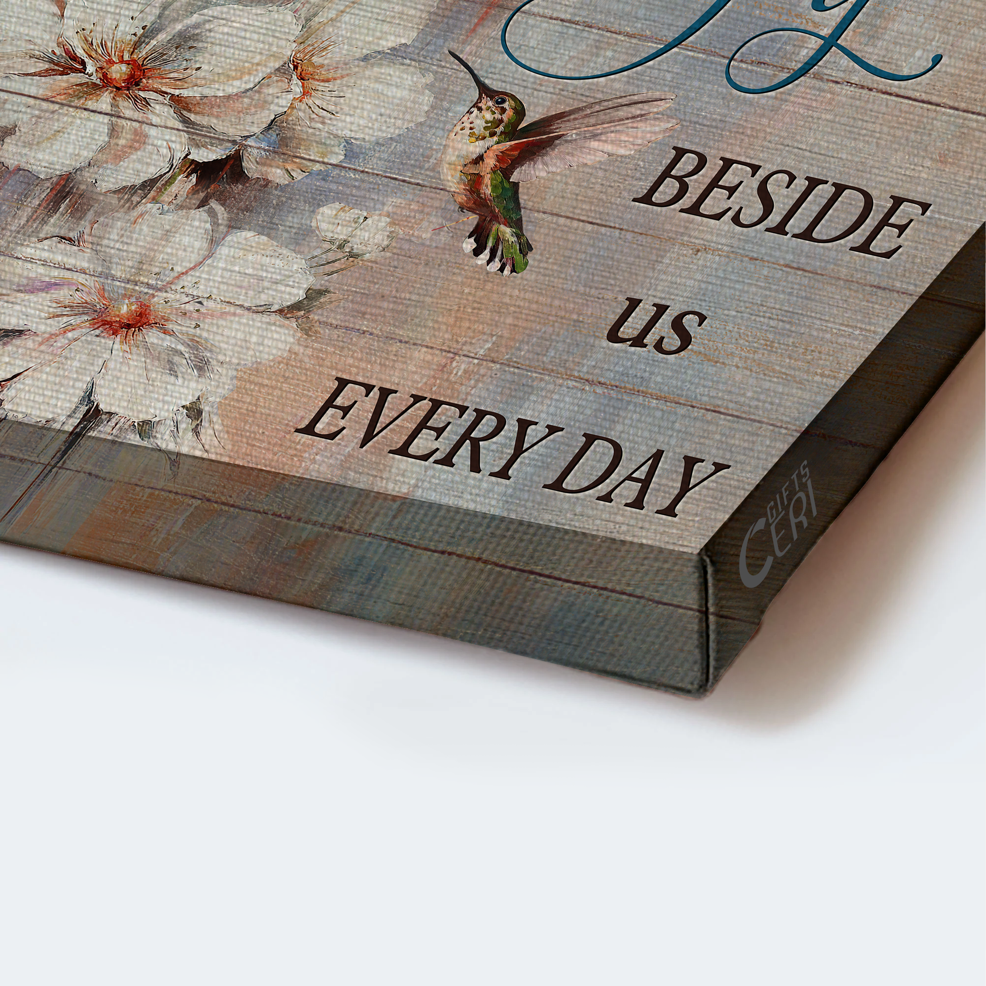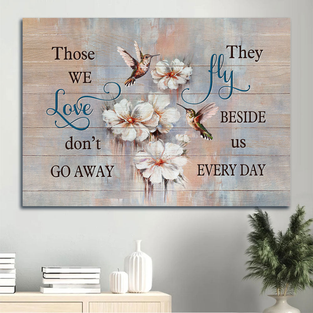 Heaven Landscape Canvas - White Climbing Rose, Watercolor Hummingbird Memorial Canvas - Memorial Gift For Member Family - Those We Love Don't Go Away, They Fly Beside Us Every Day