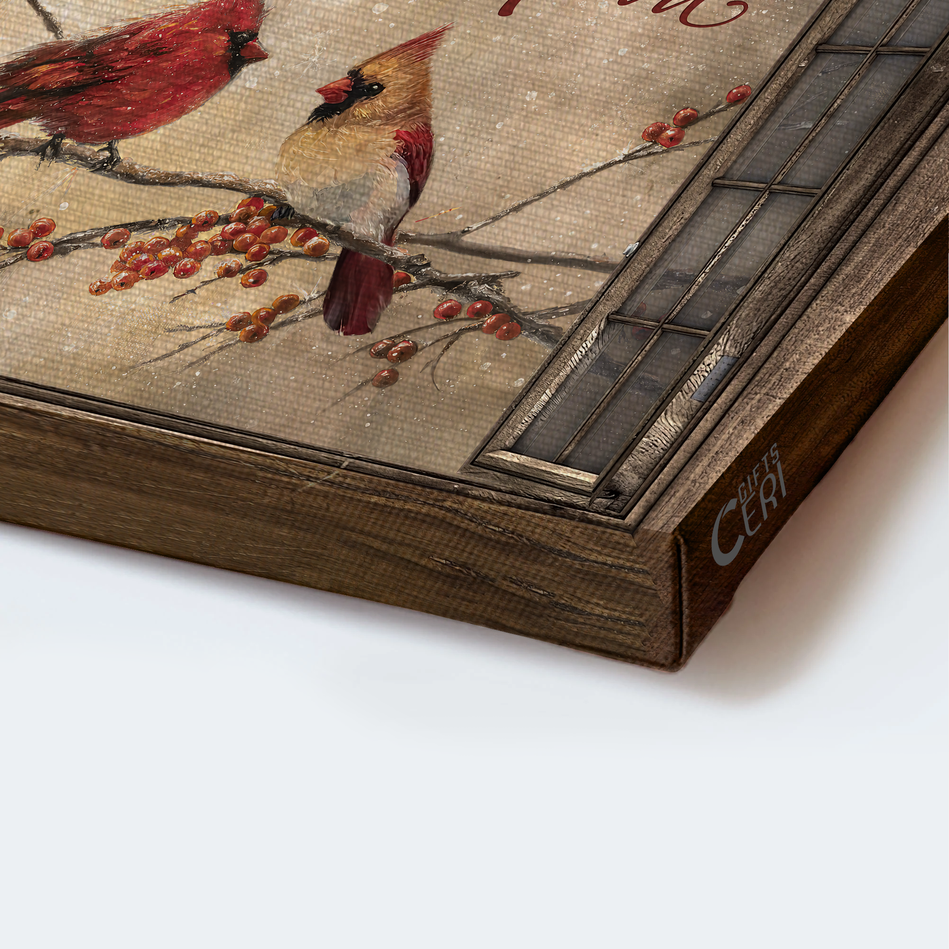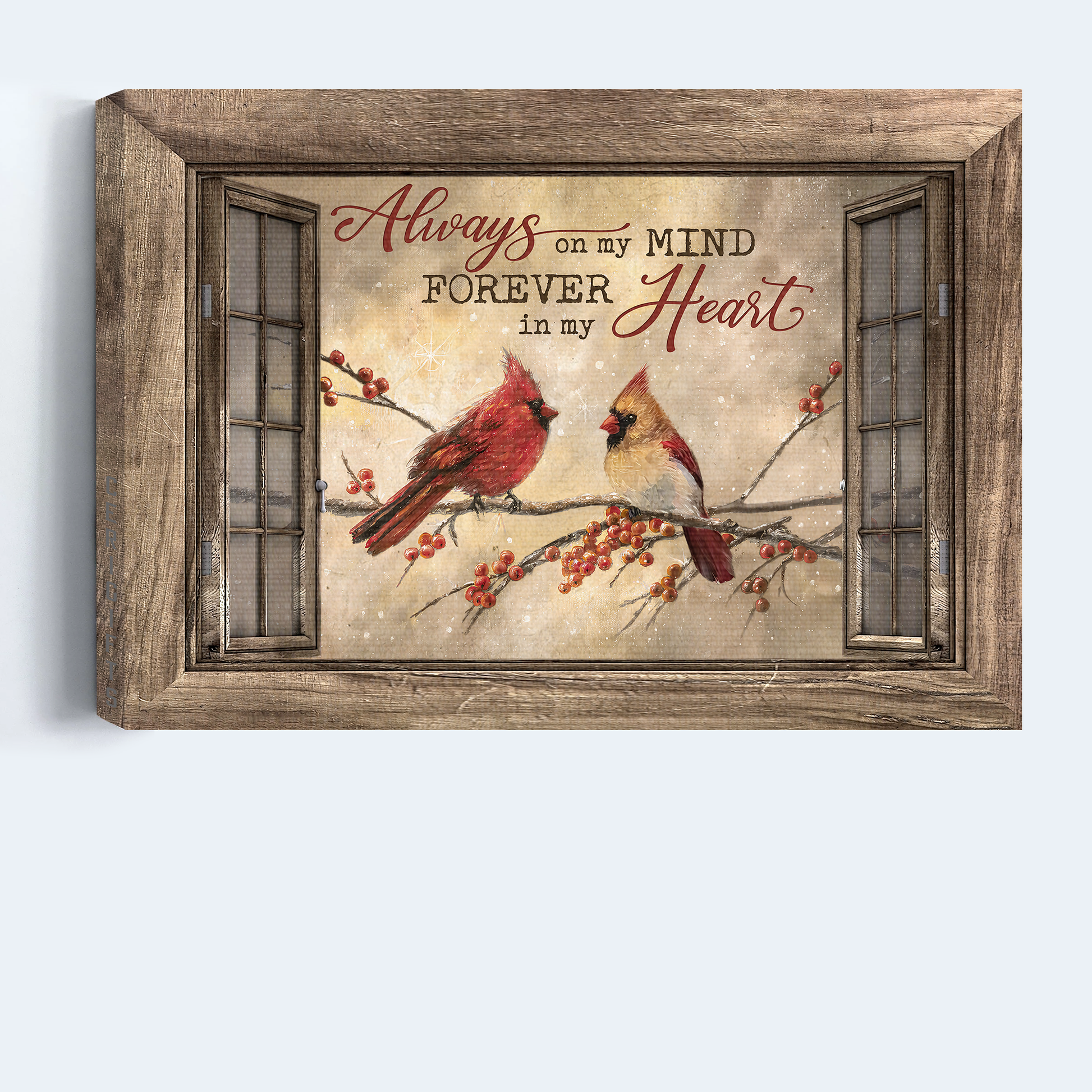 Heaven Landscape Canvas - Winter Painting, Cardinal Couple, Cranberry Tree, Memorial Canvas - Memorial Gift For Member Family - Always On My Mind Forever In My Heart