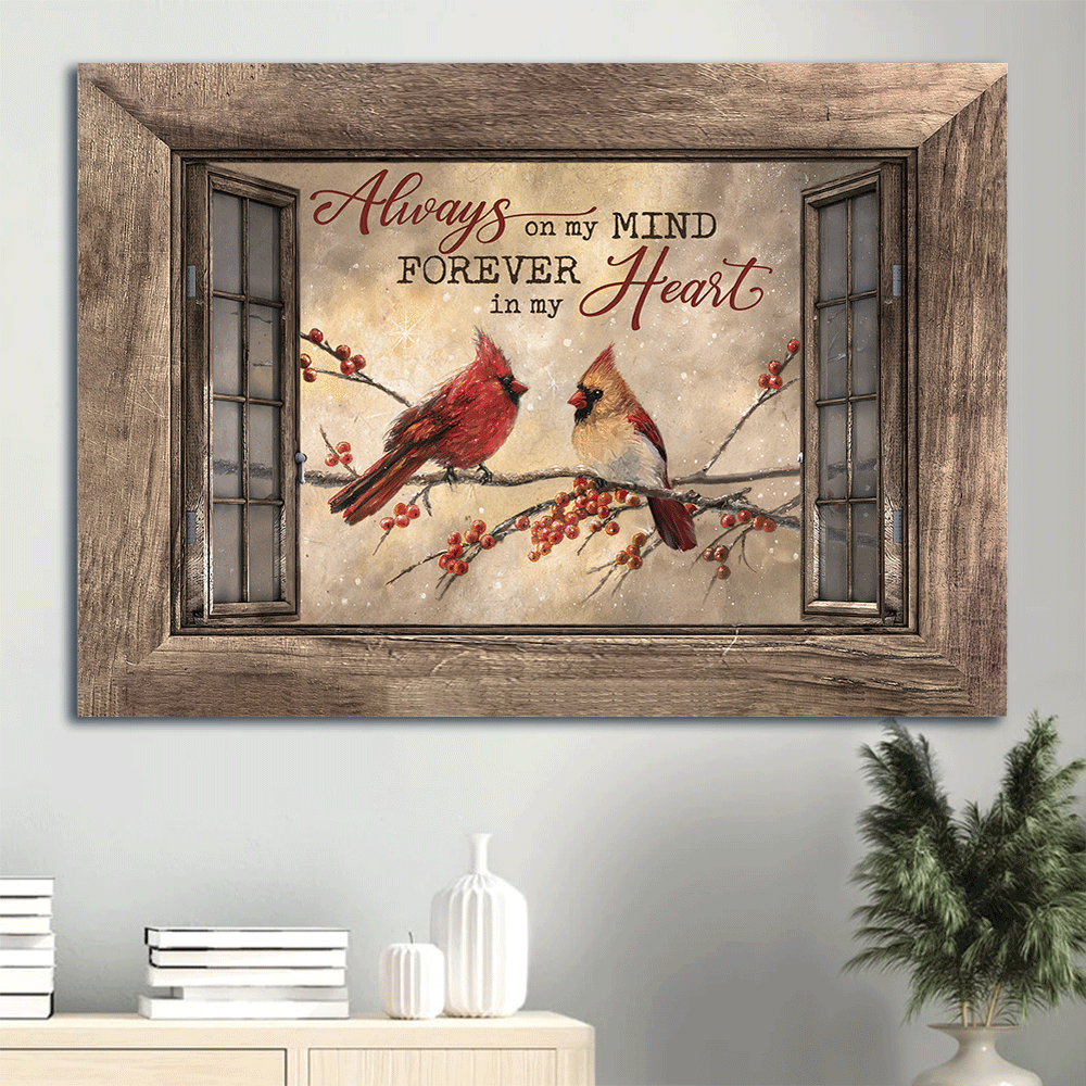 Heaven Landscape Canvas - Winter Painting, Cardinal Couple, Cranberry Tree, Memorial Canvas - Memorial Gift For Member Family - Always On My Mind Forever In My Heart Canvas Prints, Wall Art is suitable for any room in your house.