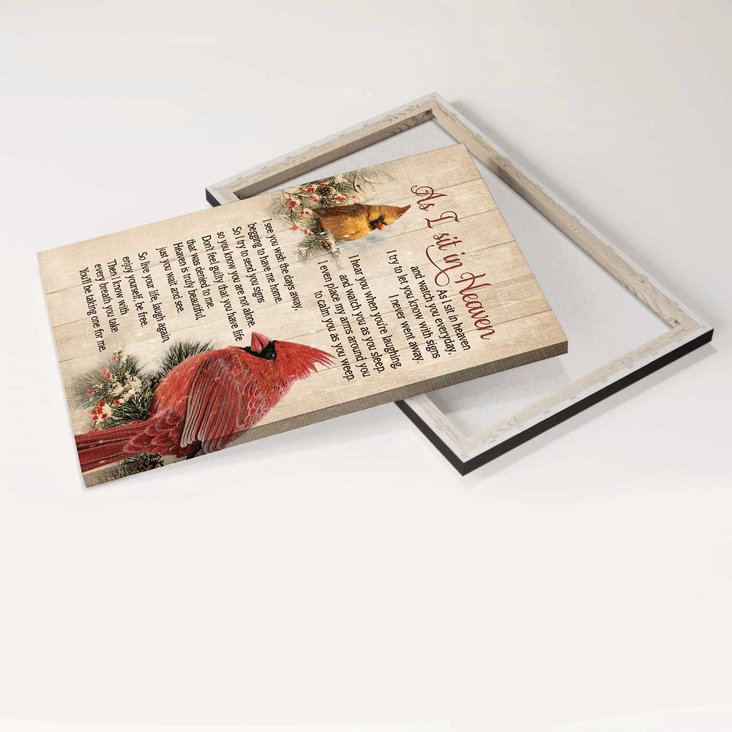 Heaven Portrait Canvas - Big Cardinal Drawing, Frozen Cranberry, Winter Drawing Portrait Canvas - Memorial Gift For Family Members - As I Sit In Heaven