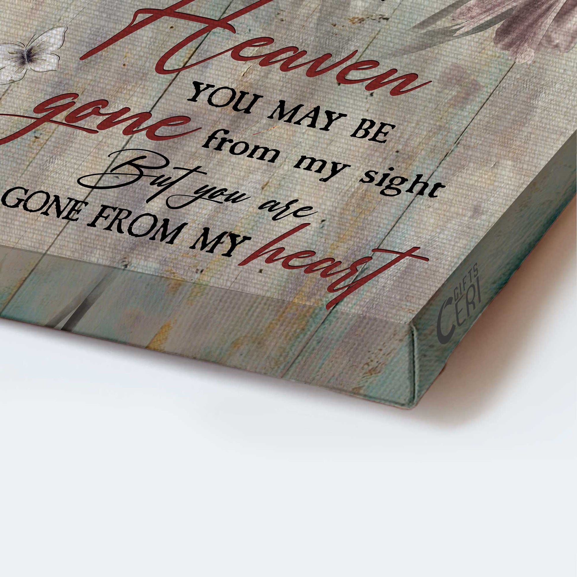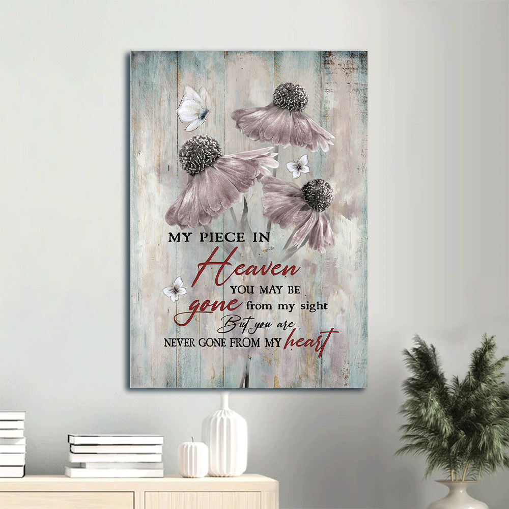 Heaven Portrait Canvas - Light pink flower painting, Crystal butterfly Canvas - Memorial Gift For Family Members - You are never gone from my heart Heaven Portrait Canvas