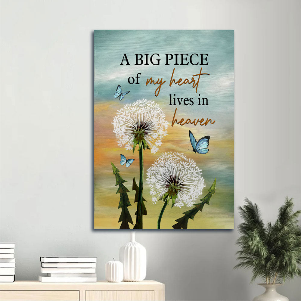 Heaven Portrait Canvas - White Dandelion, Blue Butterfly, Memorial Canvas - Memorial Gift For Member Family - A Big Peace Of My Heart Lives In Heaven