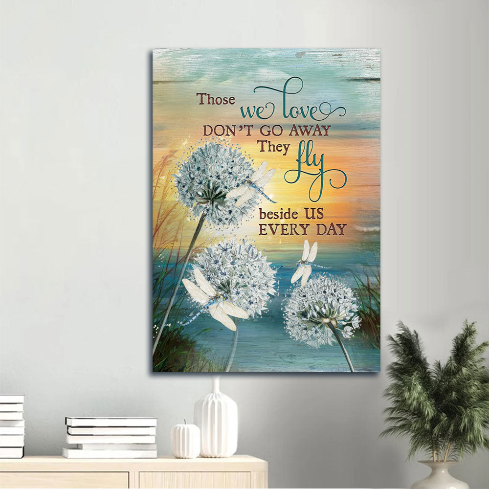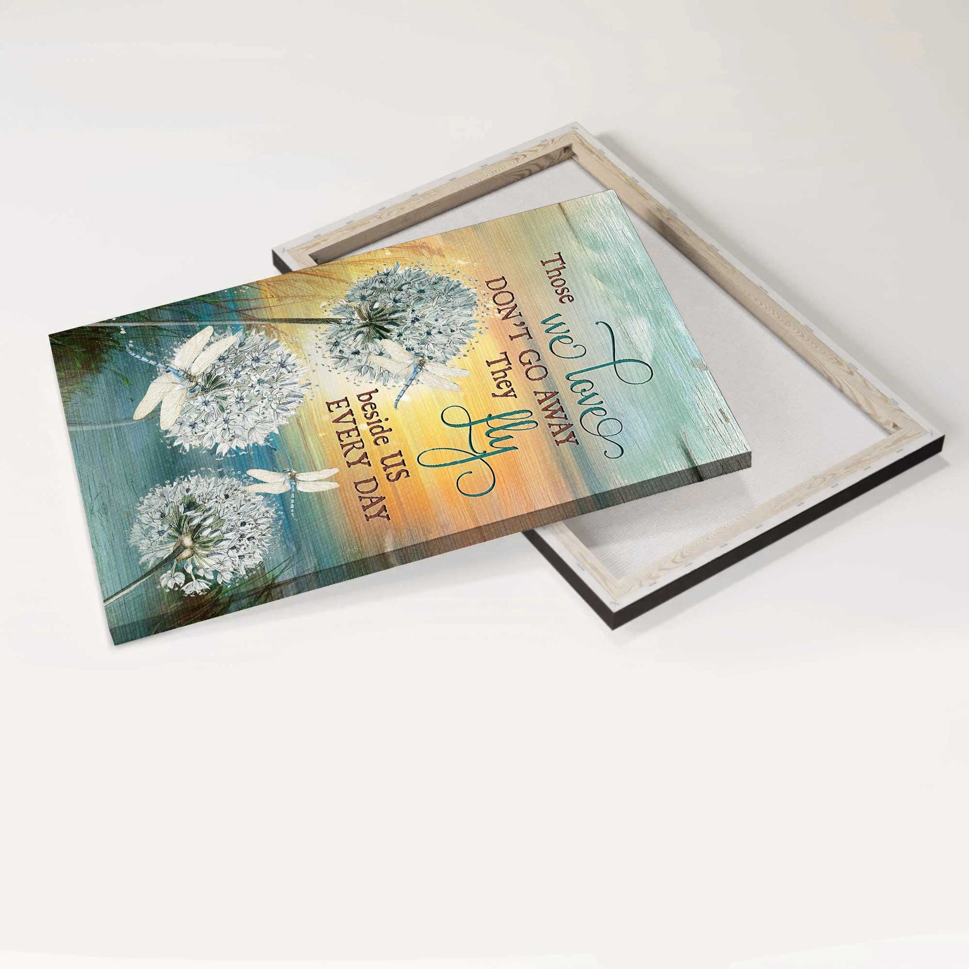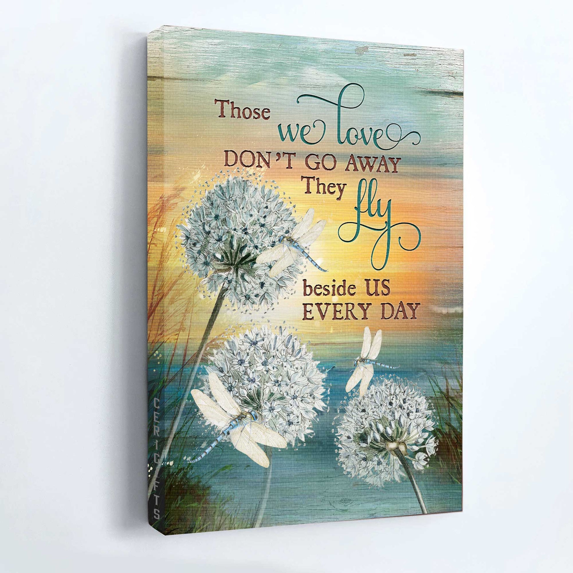 Losing someone is the hardest thing in life, especially when it’s the person you love most. We fully feel for it, and get willing to share your sadness from the bottom of our hearts. With a gorgeous background, beautiful dragonflies, white dandelions and the capture Those we love don't go away, this canvas will bring a sense of peace to your soul.
