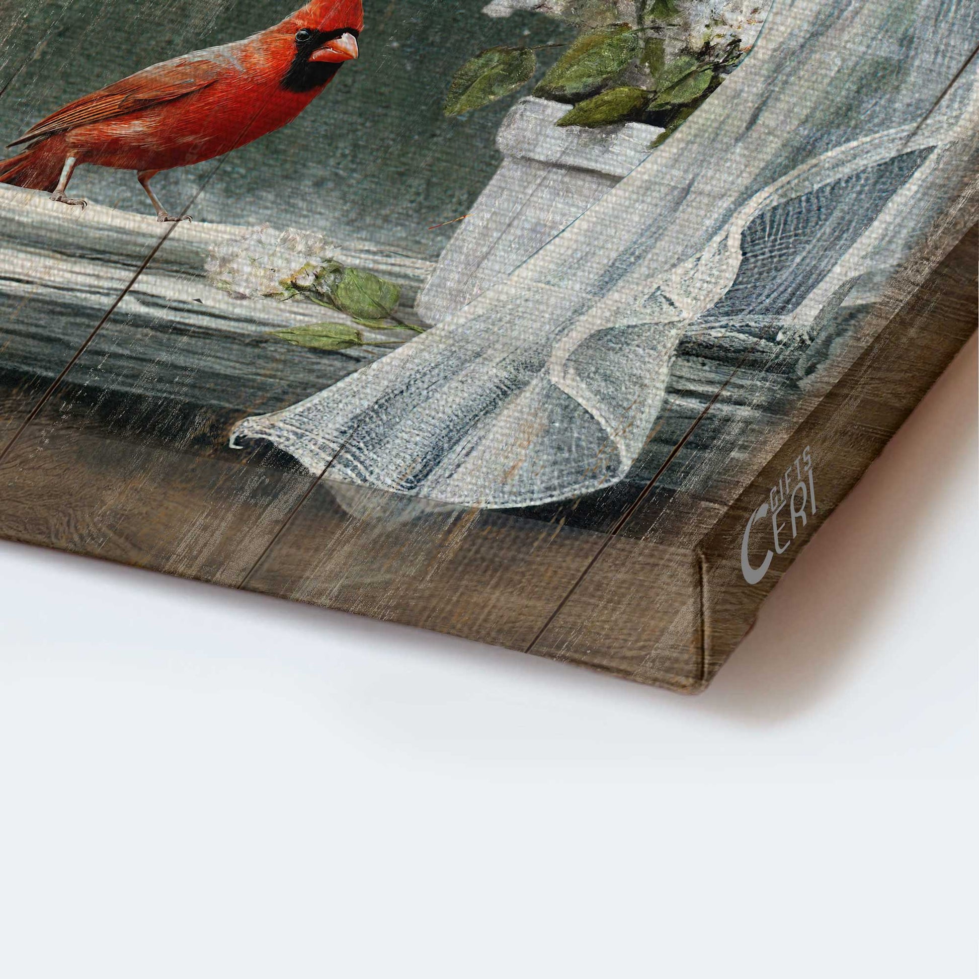 Heaven Portrait Canvas - White Hydrangea, Cardinal Painting, Spring Drawing, Memorial Canvas - Memorial Gift For Member Family - I Am Always With You