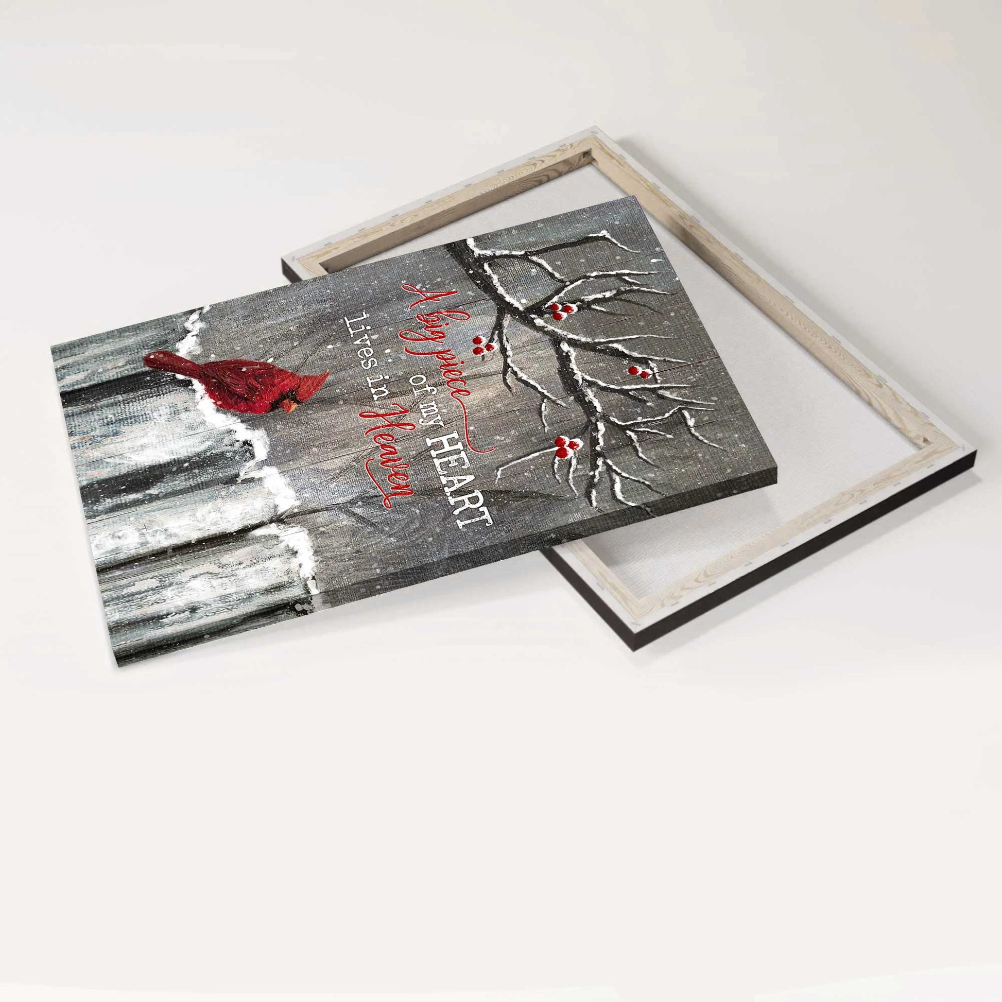 Do you want to add some joy to your living space? Then, this amazing Heaven Portrait Canvas - Winter Garden, Cardinal Painting Memorial Canvas - Memorial Gift For Member Family - A Big Piece Of My Heart Lives In Heaven Canvas Prints, Wall Art is the perfect option for you!