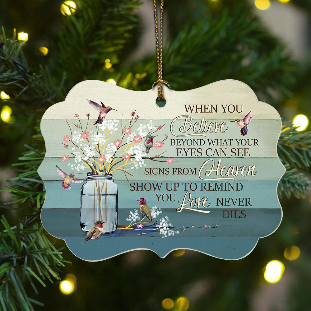 Heaven Benelux Aluminum Ornament - Hummingbird - Memorial Gift For Family Members - When You Believe Heaven Will Show Up