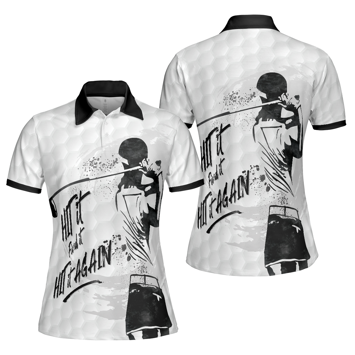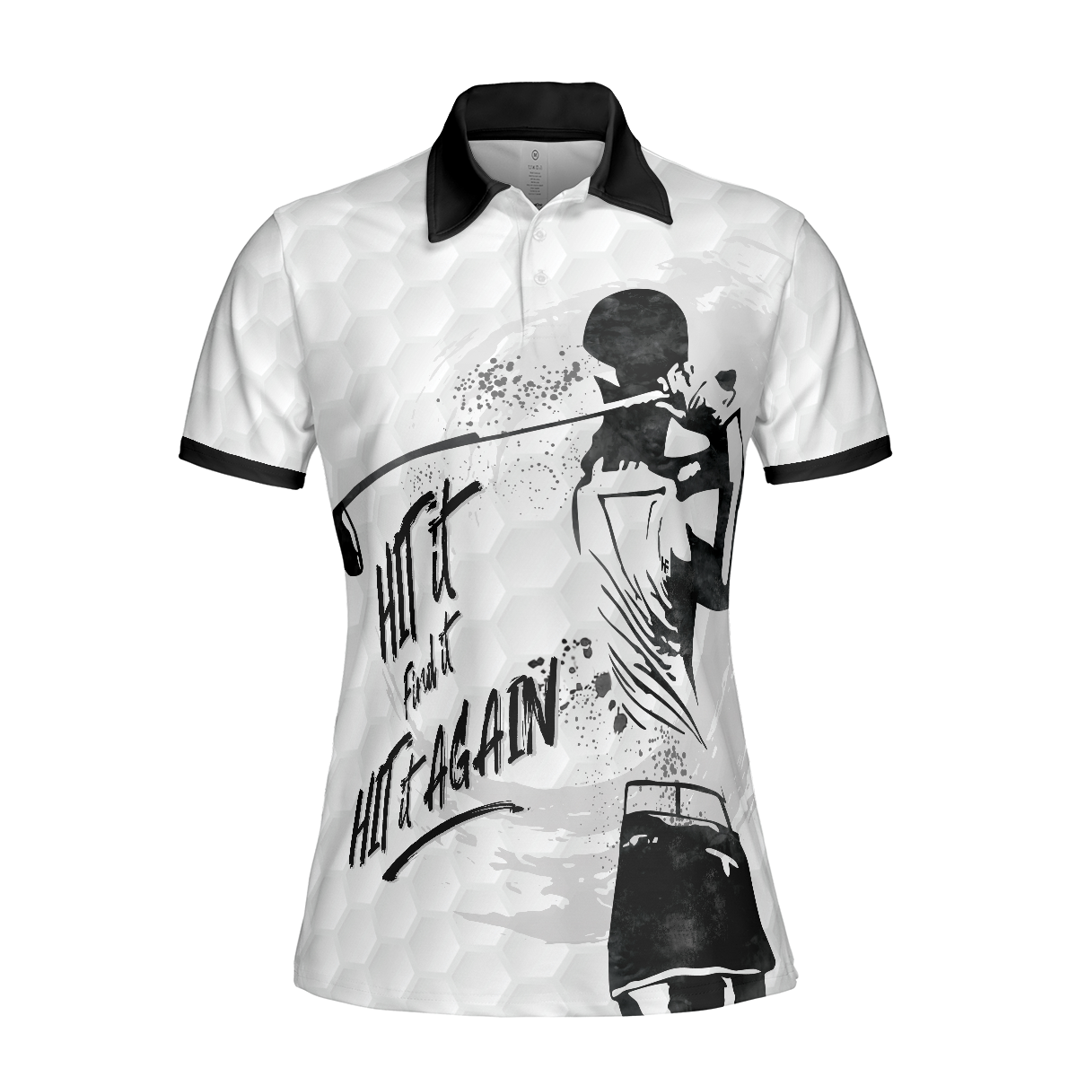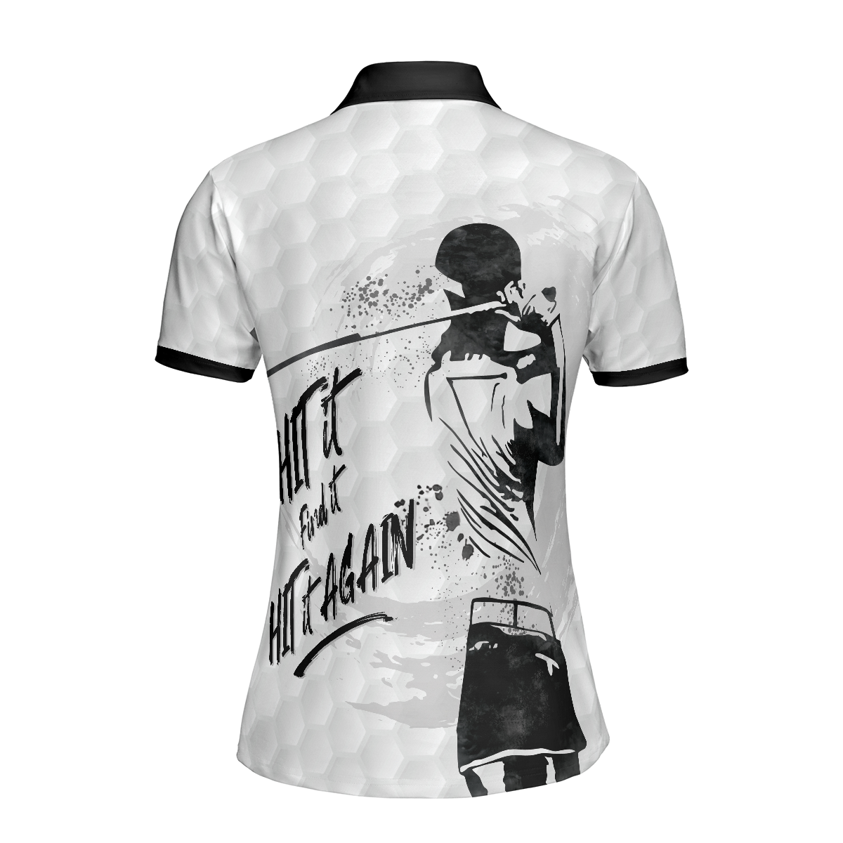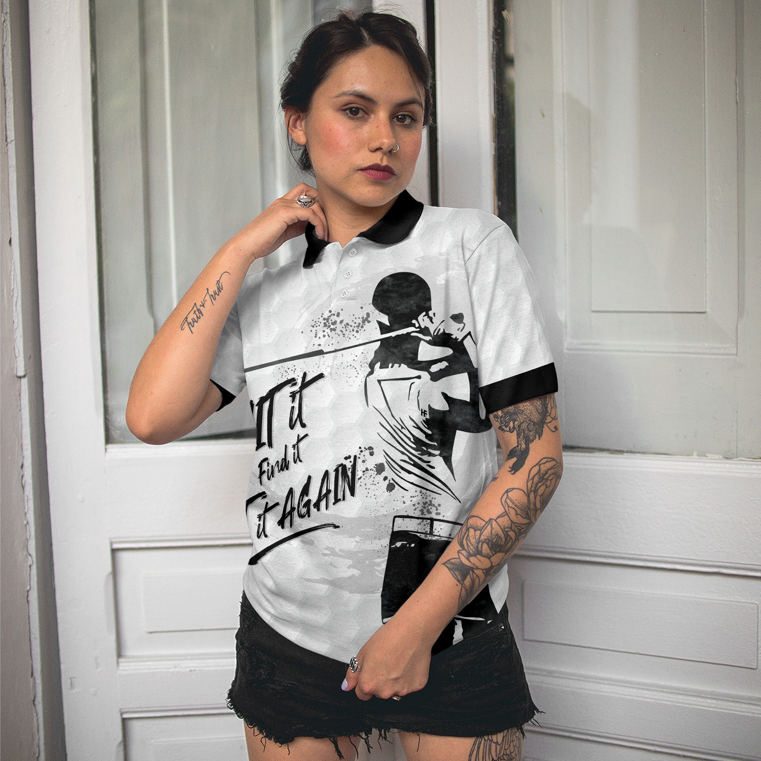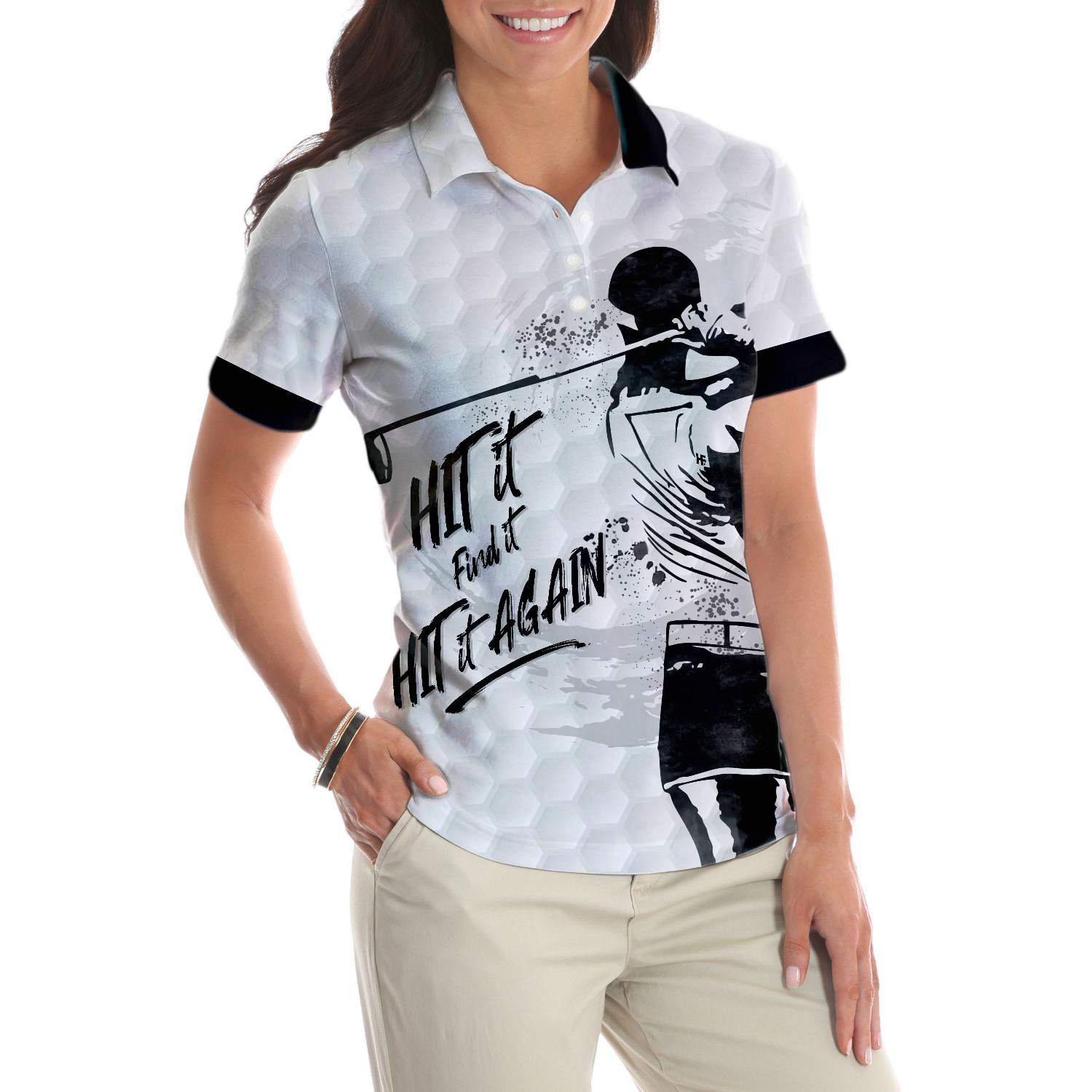 Hit It Find It Hit It Again Short Sleeve Women Polo Shirt, Black And White Golf Shirt For Ladies, Cool Female Golf Gift