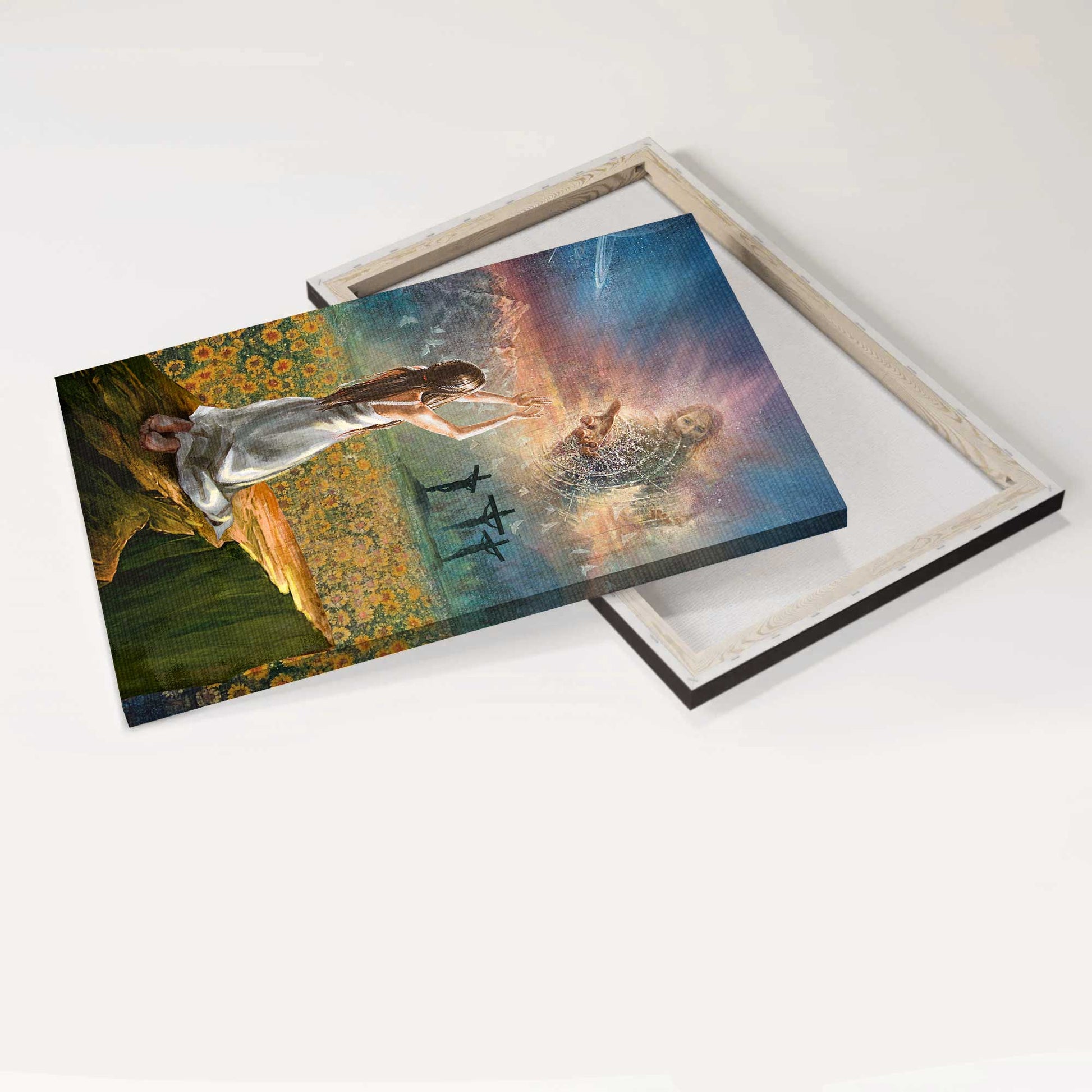 Holding my hand, Jesus Portrait Canvas- Jesus painting, Salvation prayer, Sunflower field, beautiful girl- Gift for Christian - Portrait Canvas Prints, Christian Wall Art.