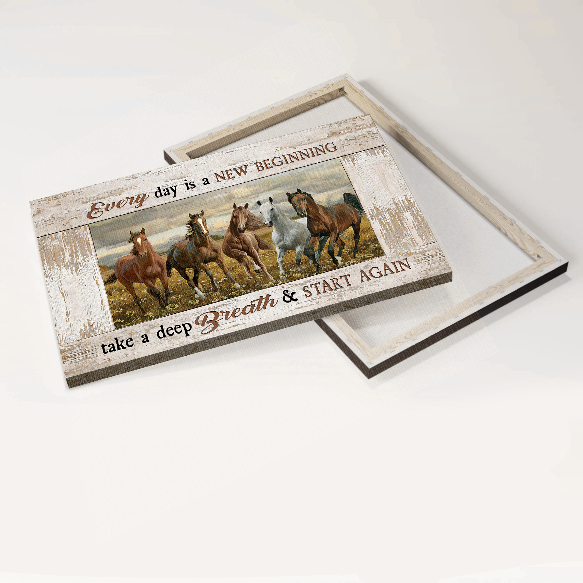 With beautiful horses in the stunning vintage flower field and the meaningful quote, this amazing Horse painting, Running horse, Meadow landscape, A beautiful day canvas- Gift for Christian-  Everyday is a new beginning - Landscape Canvas Prints, Christian Wall Art will serve as a warming presence in your house. This canvas is also an ideal present for your buddy, your darling and even your family.
