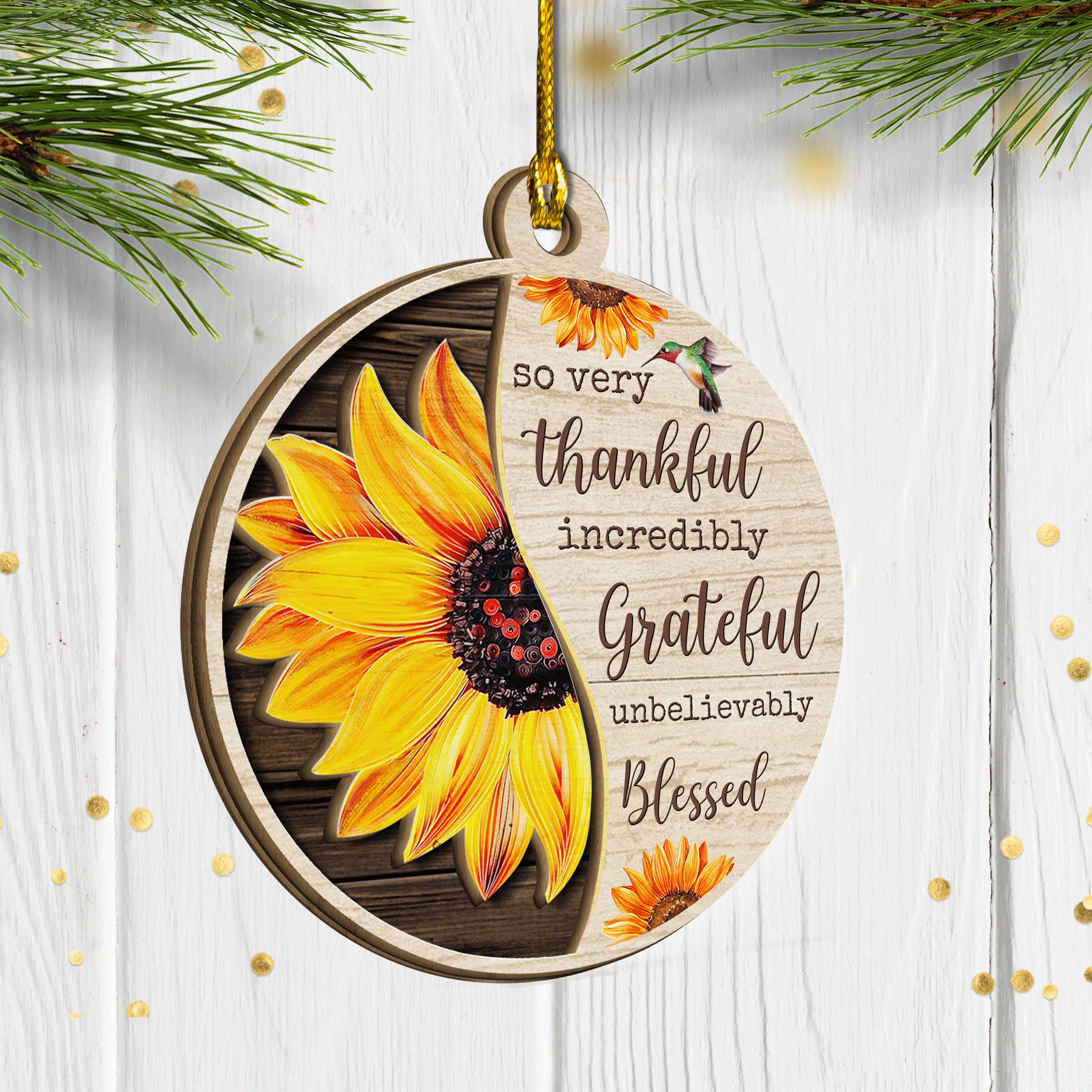 Hummingbird, Sunflower Ornaments, Inspirational Gifts for Women - Incredibly Grateful, Unbelievably Blessed Circle Wood Ornaments