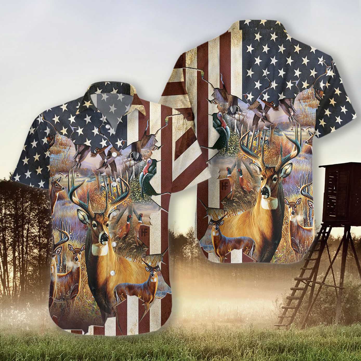Hunter American Flag Hawaiian Shirt, Hunting Aloha Shirt For Men & Women, Best Gift For Husband, Wife, Boyfriend, Girlfriend
