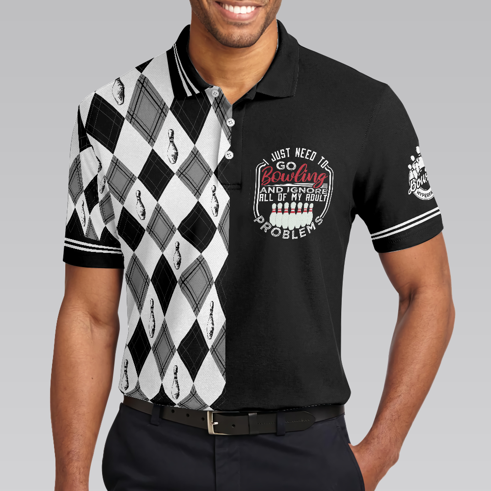 I Just Need To Go Bowling Polo Shirt, Black And White Argyle Pattern Polo Shirt, Best Bowling Shirt For Men