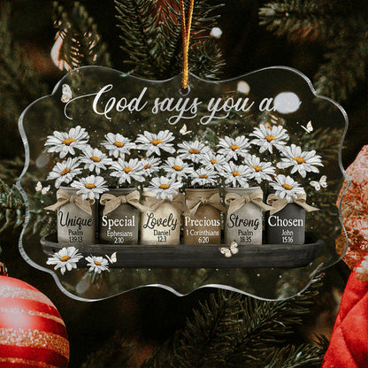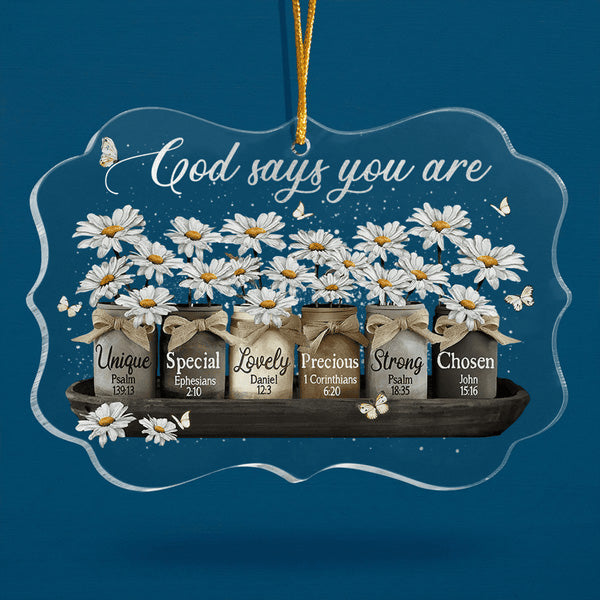 Daisy Mason Jar And Butterfly God Says You Are Acrylic Ornament, Christmas Gift For Family, Friends