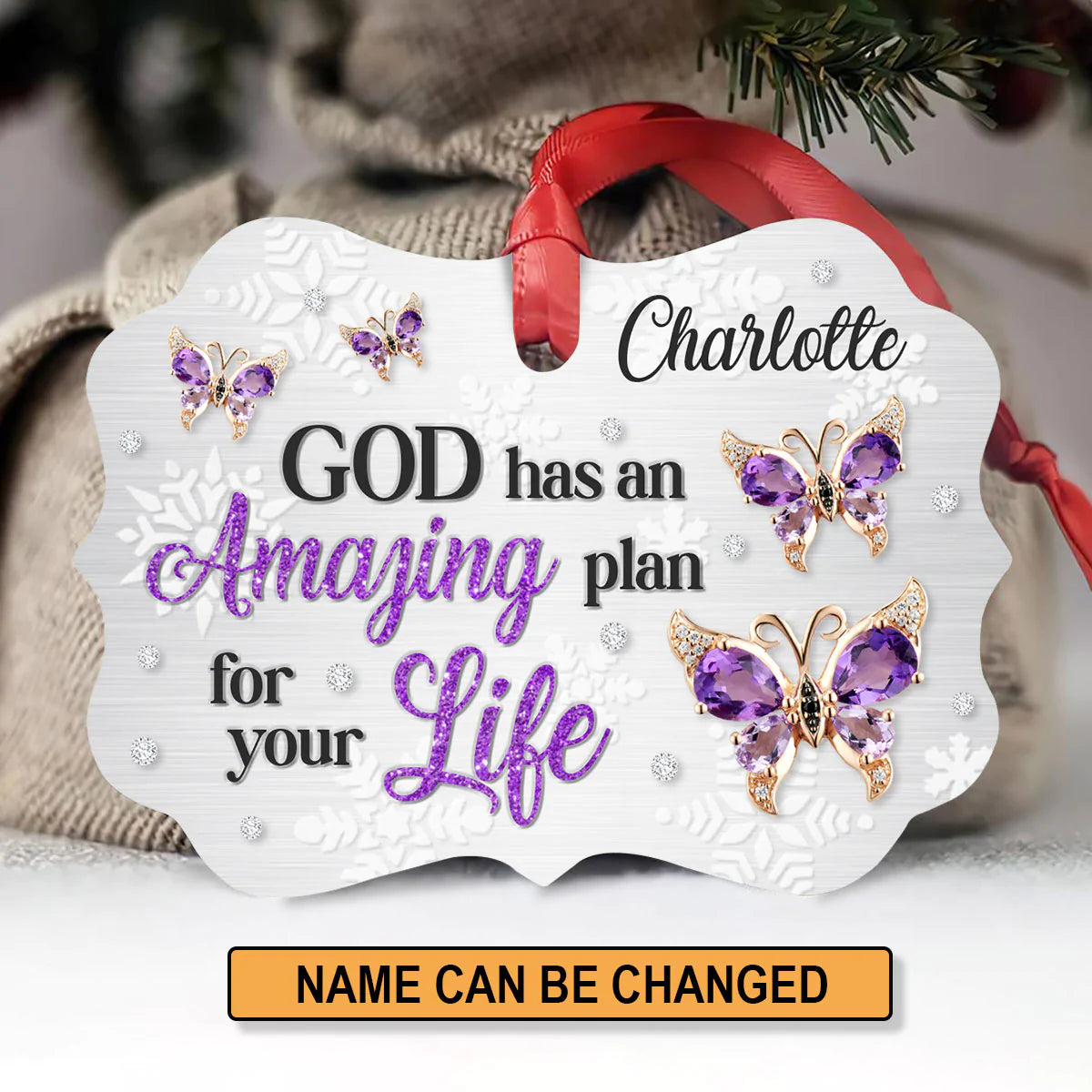 Jesus Aluminum Ornament - Personalized God, Butterly Aluminium Ornament - Custom Gift For Christian Couple, Spouse, Lover, Family - God Has An Amazing Plan For You