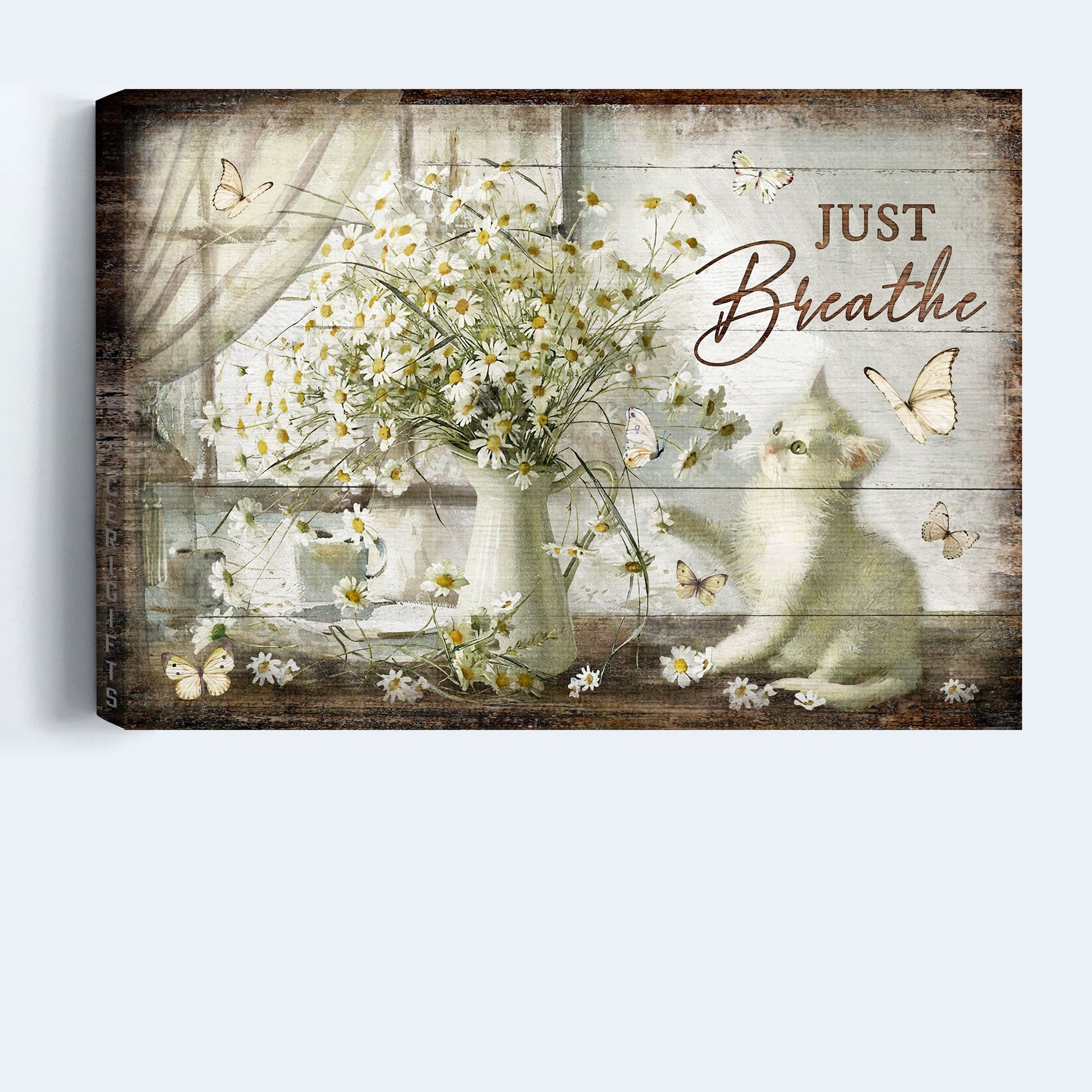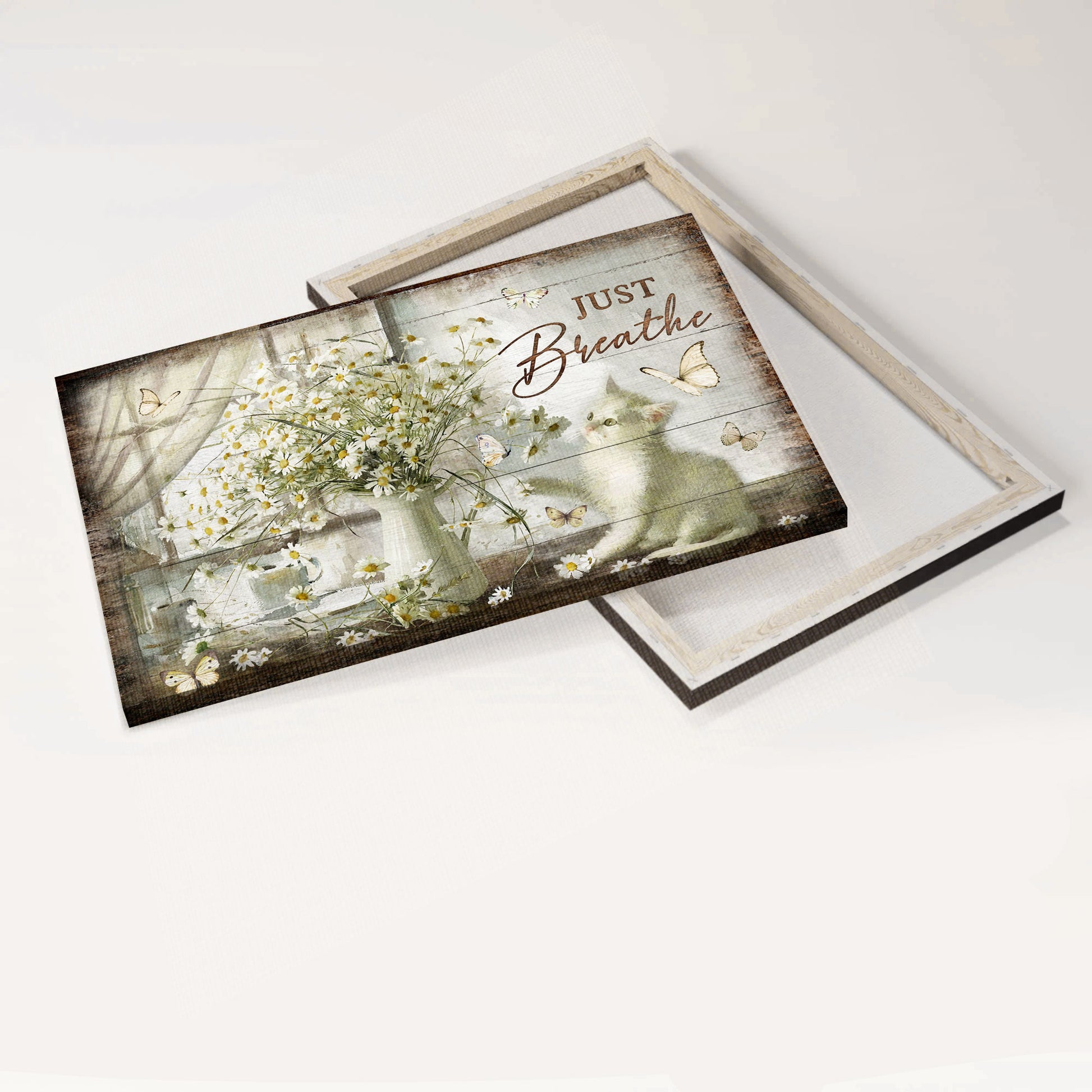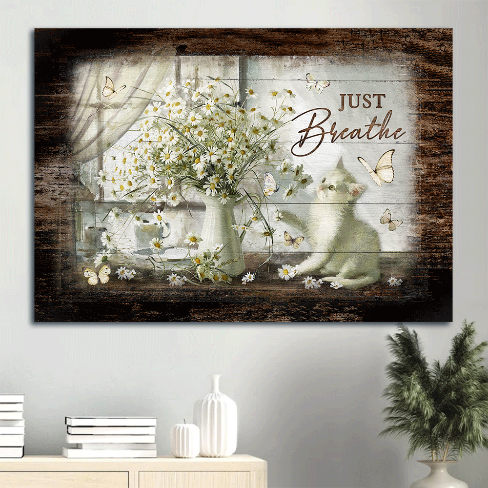 Do you want to add some joy to your living space? Then, this amazing Jesus And Cat Landscape Canvas - Vintage Flower Painting, Pretty Daisy Vase, Cute White Kitten Canvas - Gift For Christian, Cat Lovers - Just Breathe Canvas Prints, Wall Art is the perfect option for you!