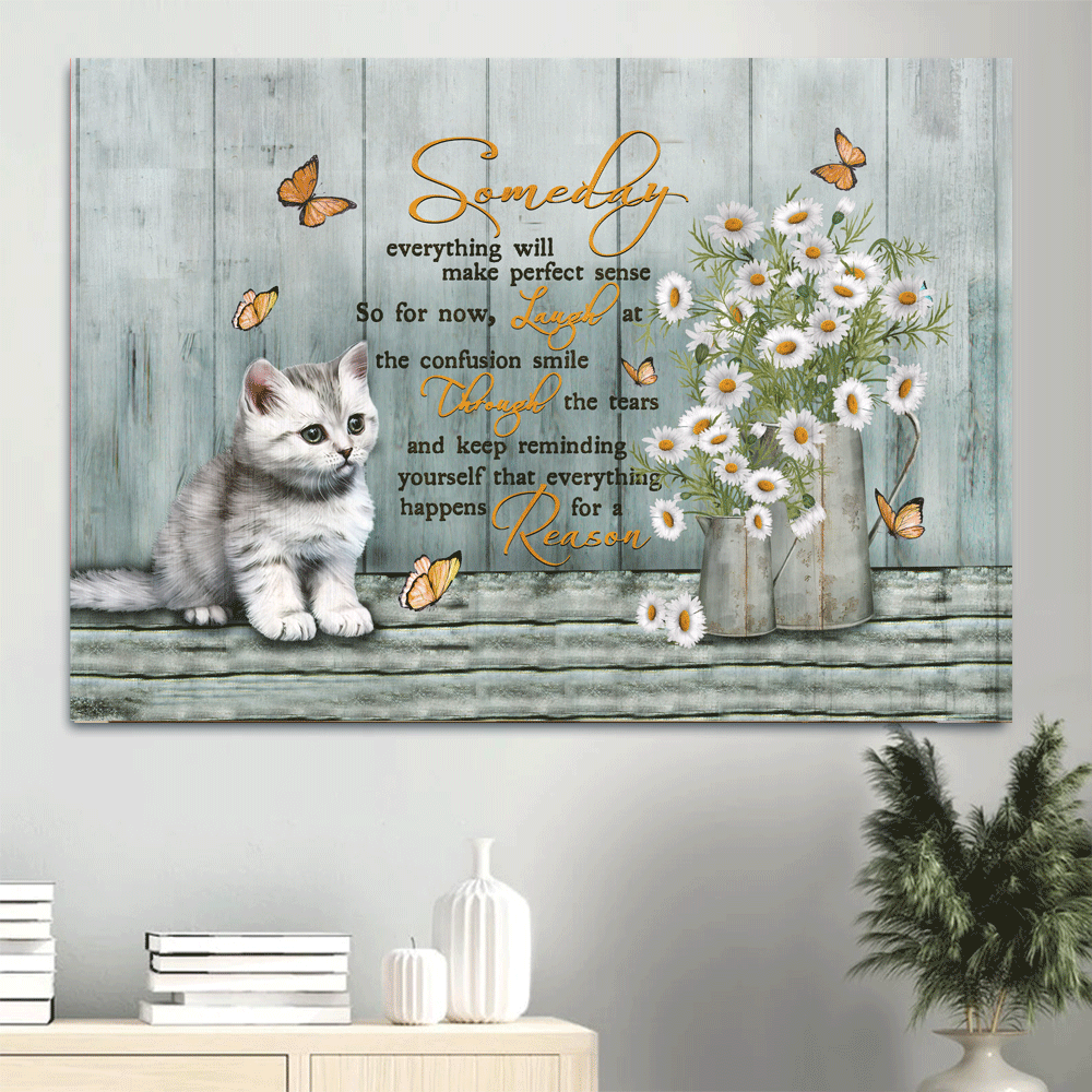 Do you want to add some joy to your living space? Then, this amazing Jesus And Cat Landscape Canvas - White Cat, Pretty Daisy Vase Canvas - Gift For Christian, Cat Lovers - Someday Everything Will Make Perfect Sense Canvas Prints, Wall Art is the perfect option for you!