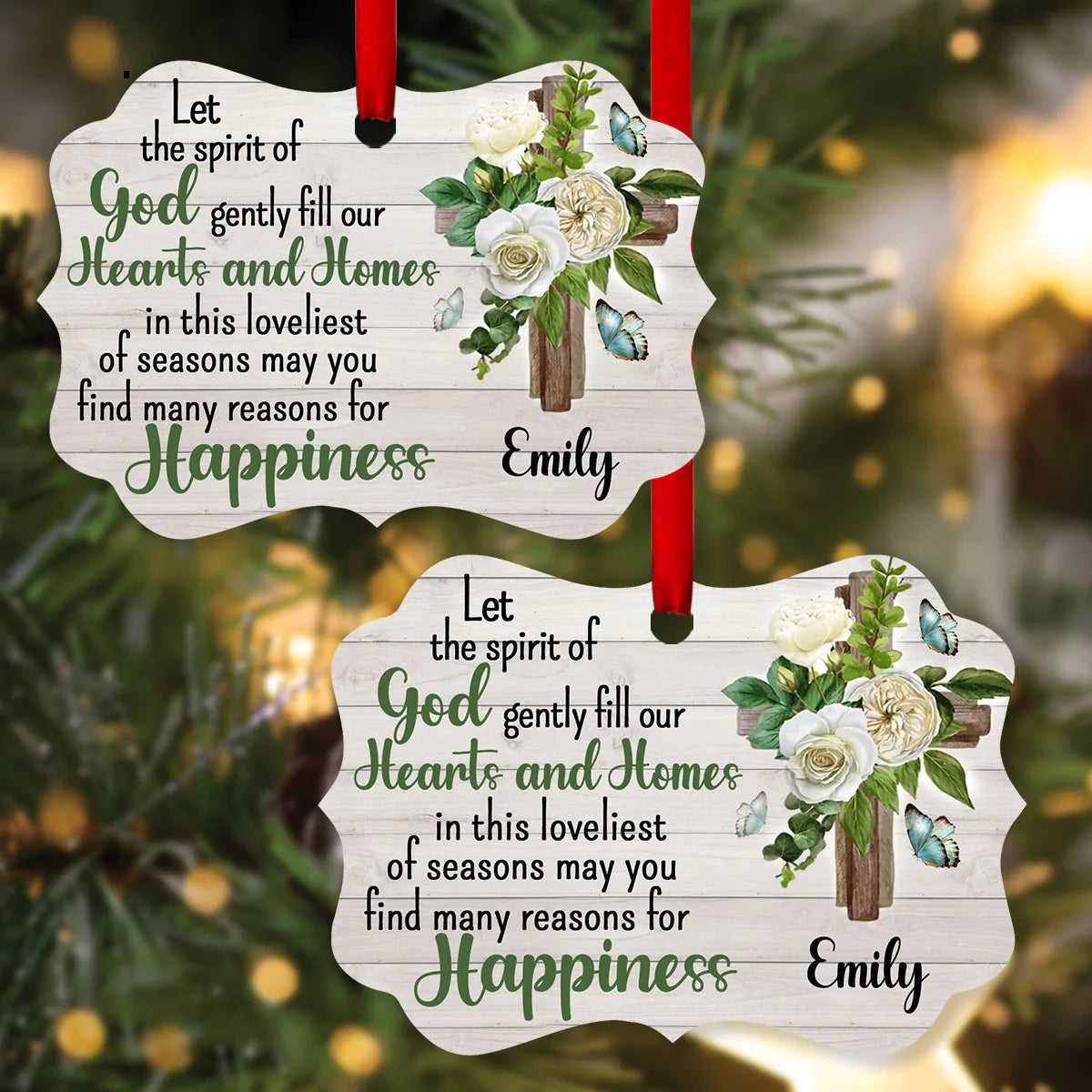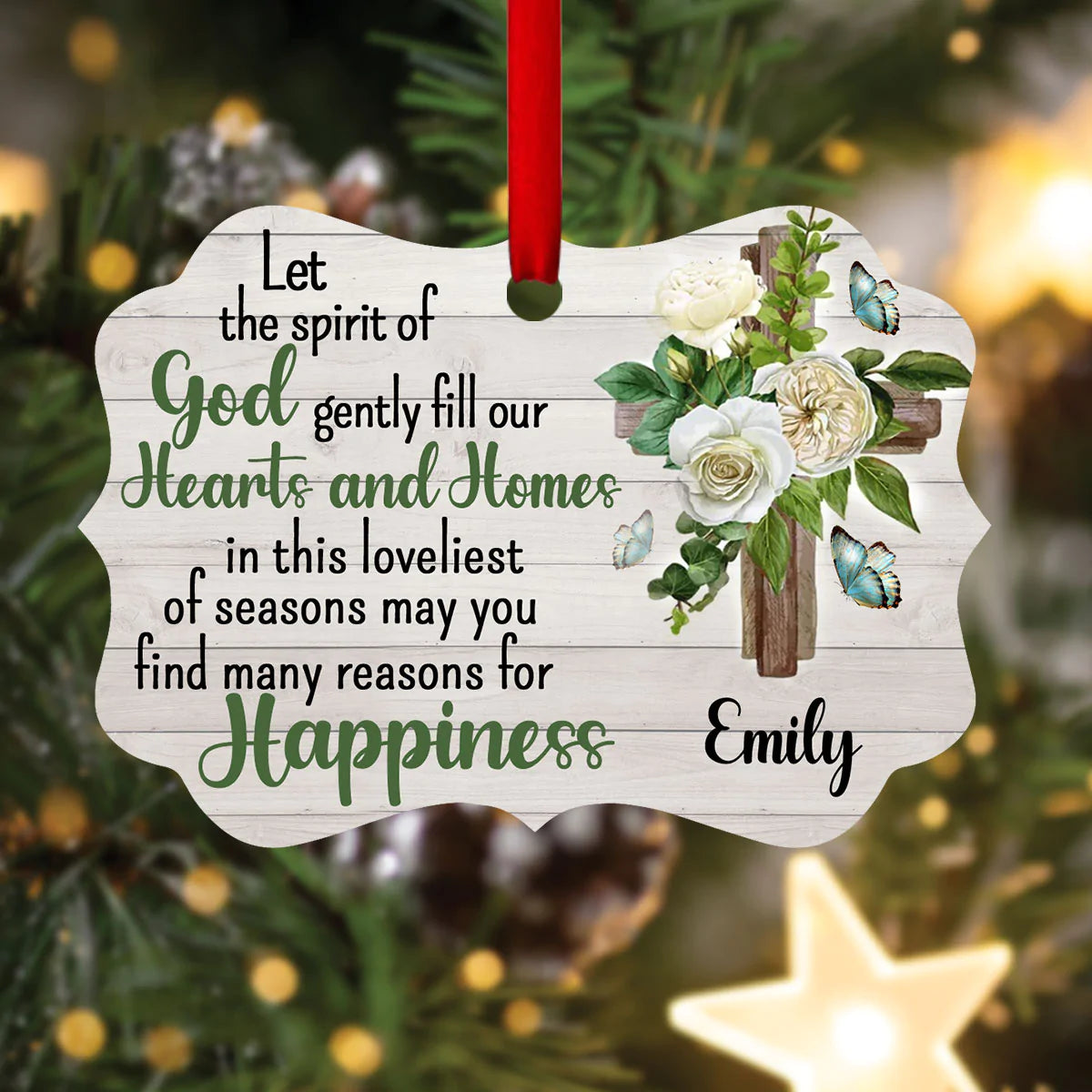 Jesus Aluminum Ornament - Personalized God, Flower, Cross Aluminium Ornament - Custom Gift For Christian Couple, Spouse, Lover - Let The Spirit Of God Gently Fill Our Hearts And Homes