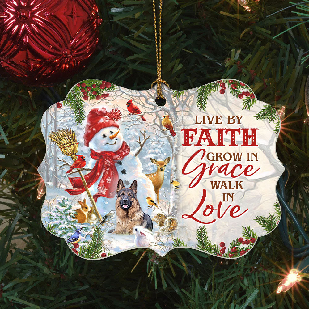 Jesus Benelux Aluminum Ornament- Cute Snowman, German Shepherd Dog, Red Cardinal Christian Gift - Live By Faith Grow In Grace Walk In Love